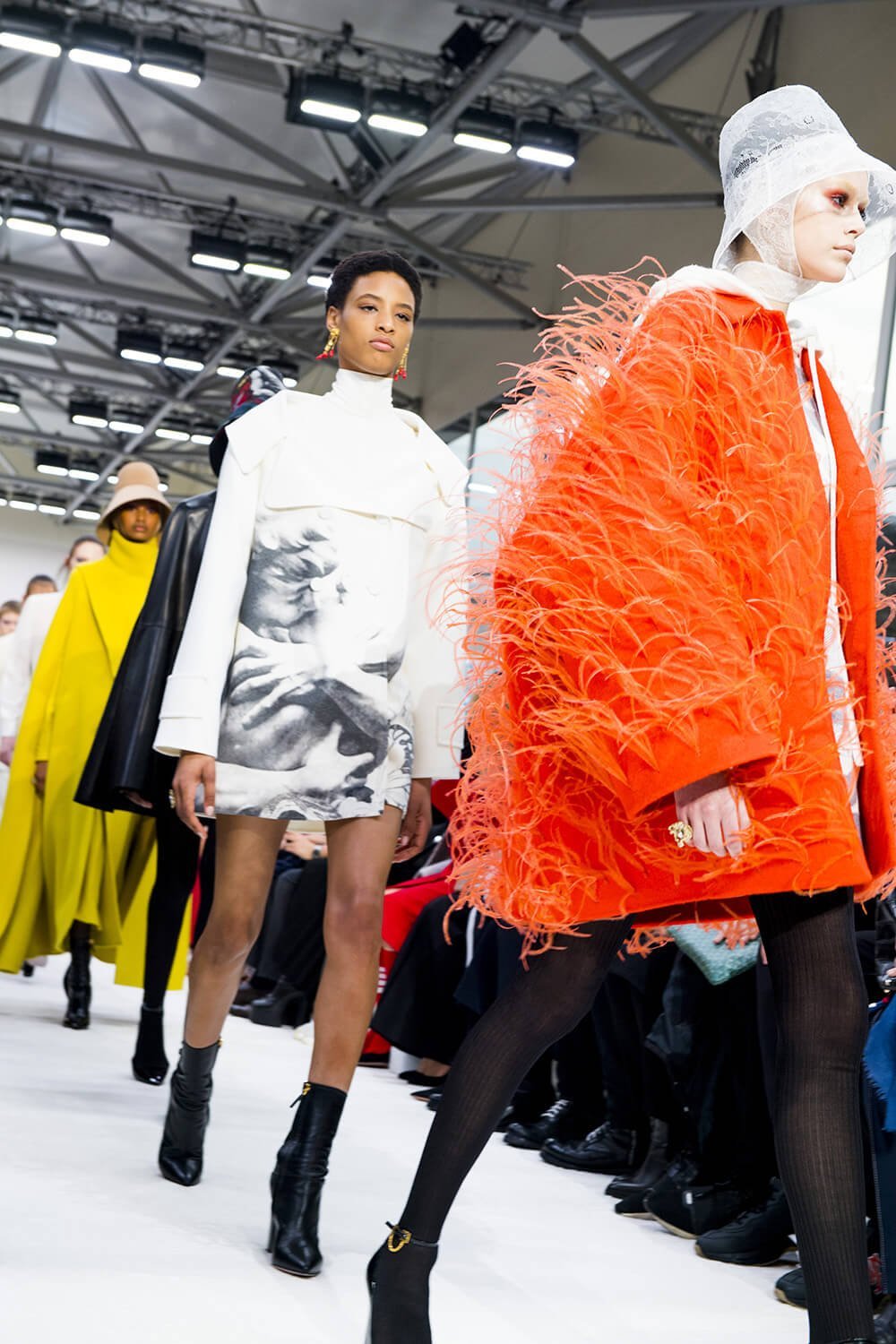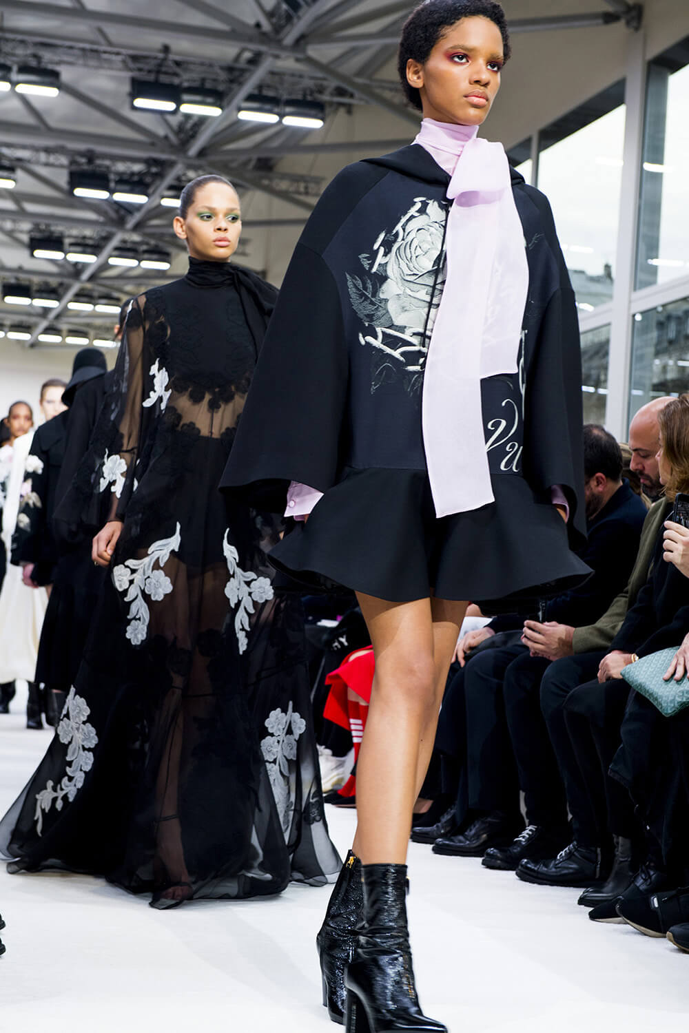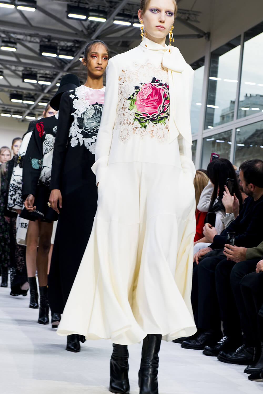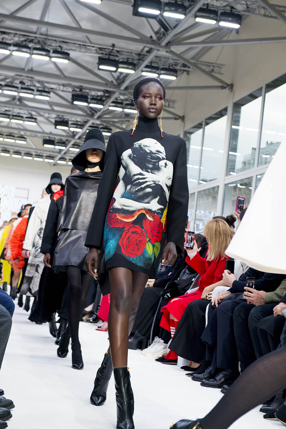 Pierpaolo Piccioli is not afraid of big emotion. His Valentino couture shows overwhelm his audience with their beauty and often bring hard-hearted fashion hacks to tears. He’s not about to let up for ready-to-wear. Love was the theme and expressing it was his aim. To that end, he enlisted Jun Takashi of Undercover to create collages and graphics of embracing couples and roses, which appeared on feathery party dresses, sweeping capes, trench coats and bucket hats (which are definitely a thing this season).
