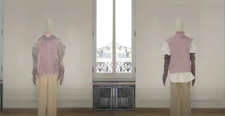Shots of the seamstresses piecing each look together are spliced with hypnotic time-lapsed images which make garments appear to move as they stand on mannequins, becoming their own glitchy, algorithmic sequences.