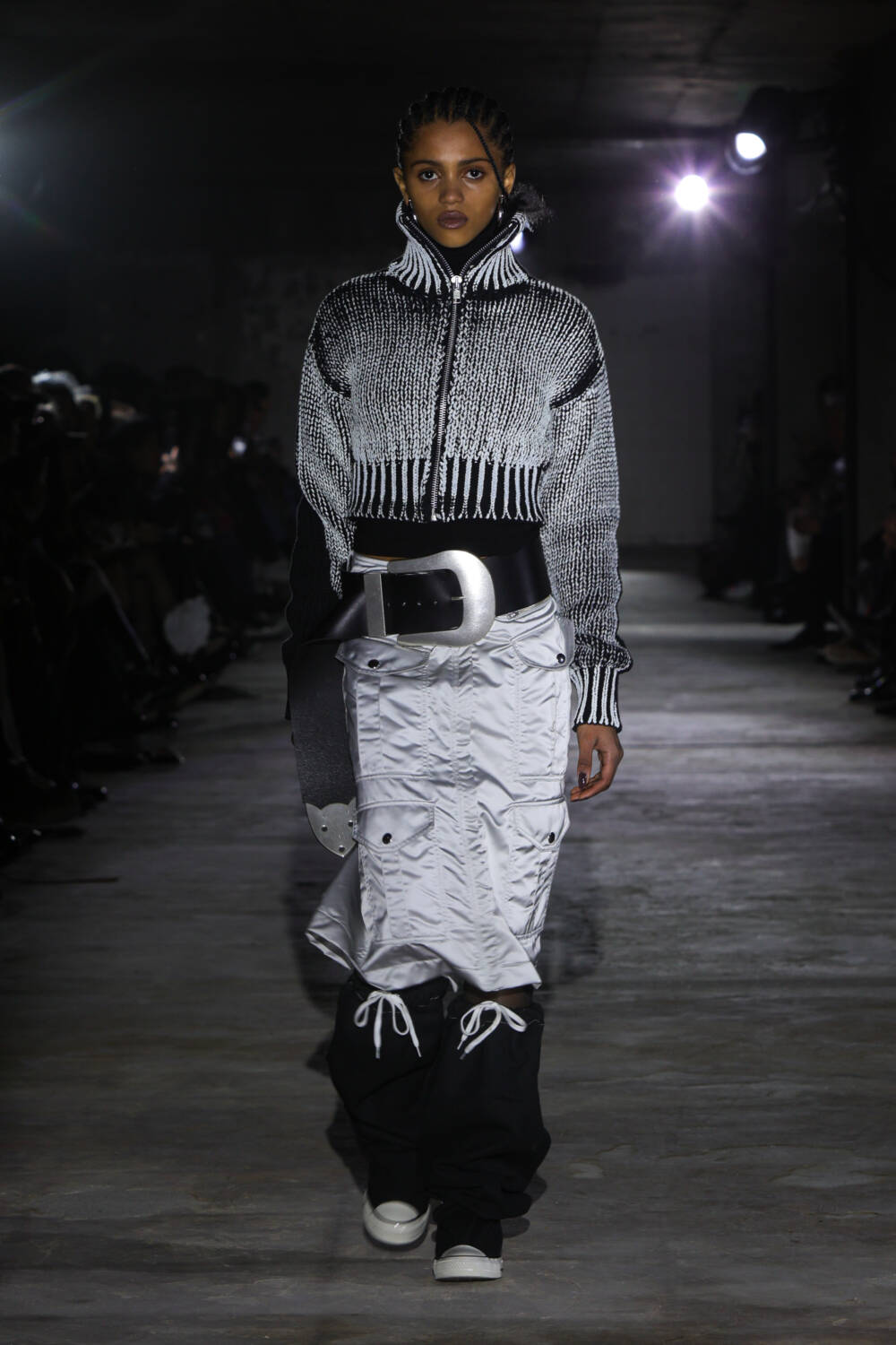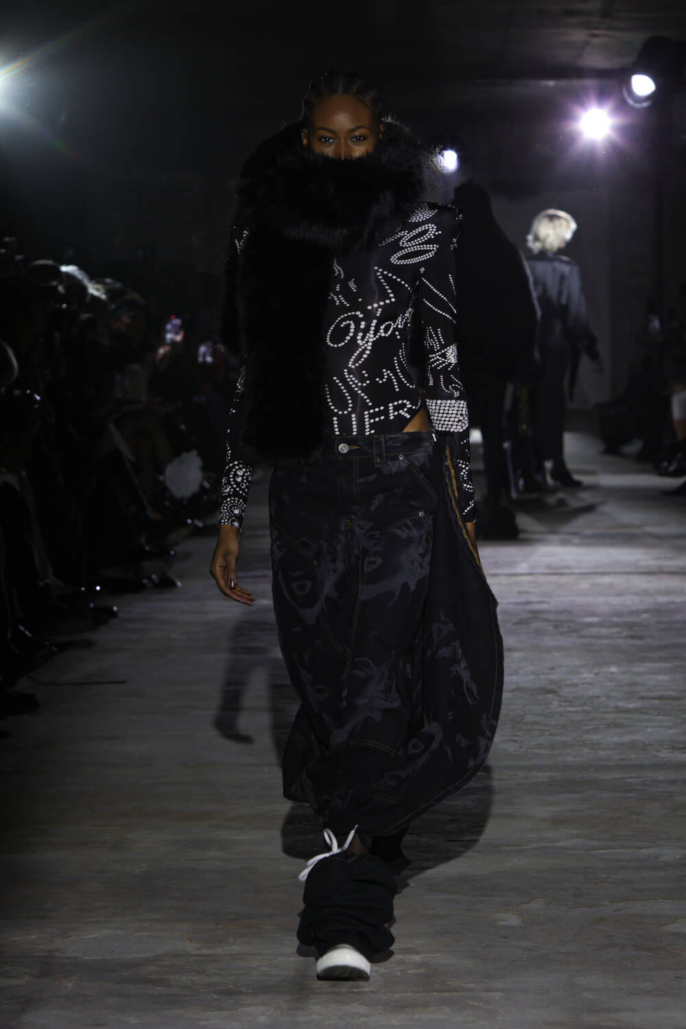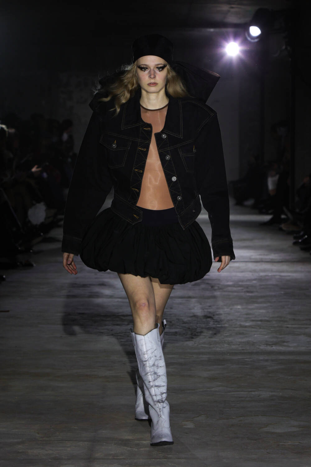 Then came the collaborations; most notably a link-up with the Andy Warhol Foundation which featured Marilyn Monroe prints on denim, and D’Heygere for jewellery, which presented huge heart-shaped pendants and rings. On feet, knee-high baggy boots with concealed wedges were created in partnership with Converse.