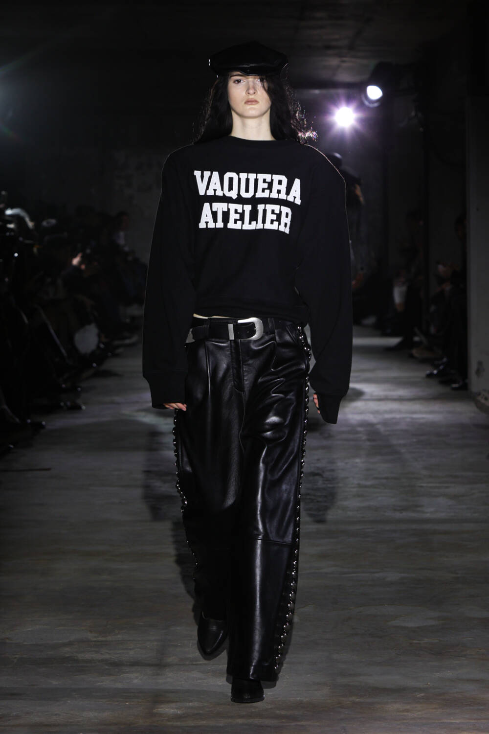 Marking one decade of unadulterated quirkiness, Vaquera sent a supersized AW25 offering stomping into Paris yesterday. Co-creative directors Patric DiCaprio and Bryn Taubensee were reflecting on their New York roots whilst anticipating their upcoming move to the French capital (they plan to relocate in June), resulting in a considered offering that artfully balanced past inspirations with future aspirations.