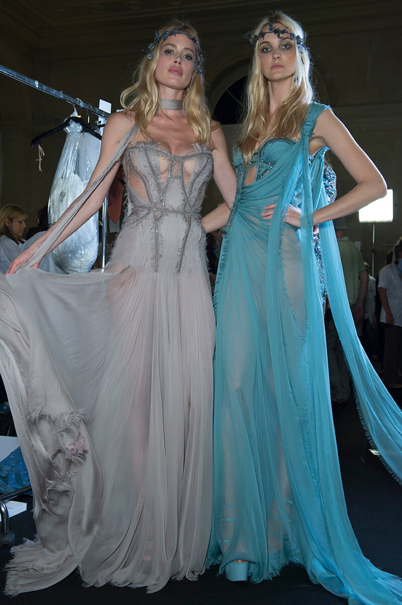 This season, Donatella says, the Versace woman is softer. She smothered her catwalk with a million orchids (okay, 25,000, but who’s counting?). And tangled flowers in her models’ hair too. Romantic? Not chez Donny. She hates the word. But she does like it soft, in drapEy chiffons and citrus colours and lots of touchy-feely fils coupé. This was definitely a delicate side to both Donatella and Versace. It was seductive, rather than shag you through a hedge backwards. I mean, we like both of them, but it was nice to see a softcore Versace for once. And guess what Tenners?! Couture’s begun!