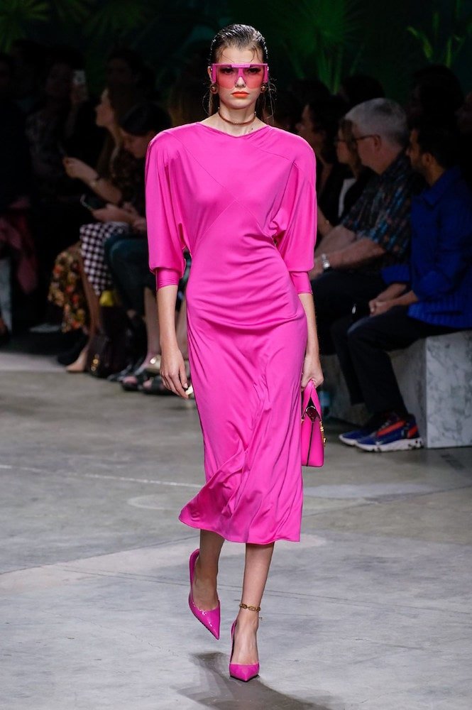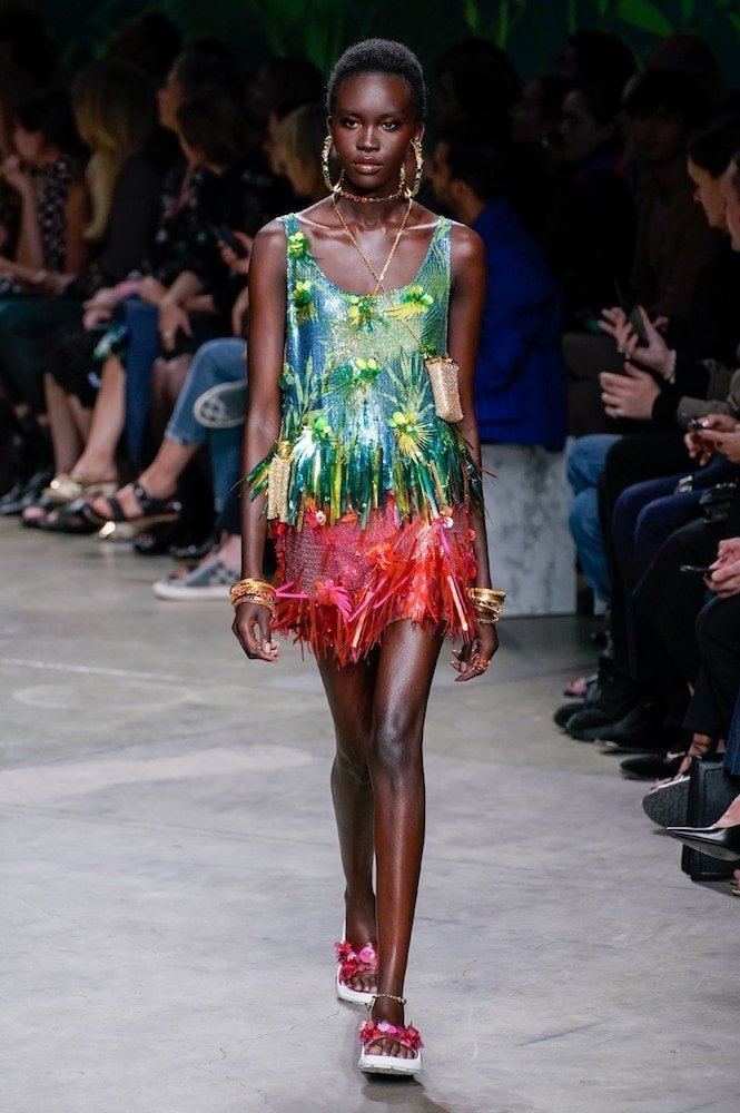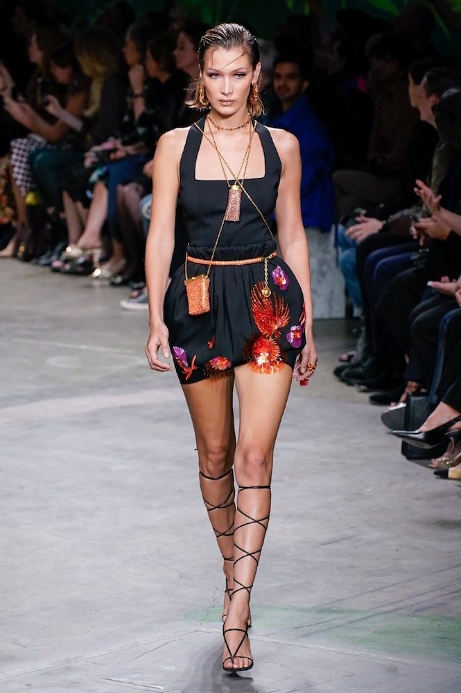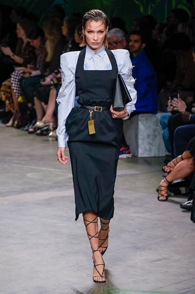 Sexy, slick, black and on Kendall Jenner, Bella Hadid and Mica Argañaraz it was the modern update on the Versace glamazon. The tropical prints beloved of the house were reignited printed on metal mini dresses mesh and encrusted with paillette fronds. It had sass, and the silhouettes were relevant. The archive played its part but didn’t overpower the sense of newness. Bravo to Donatella as Versace makes new fashion dreams for the next generation.