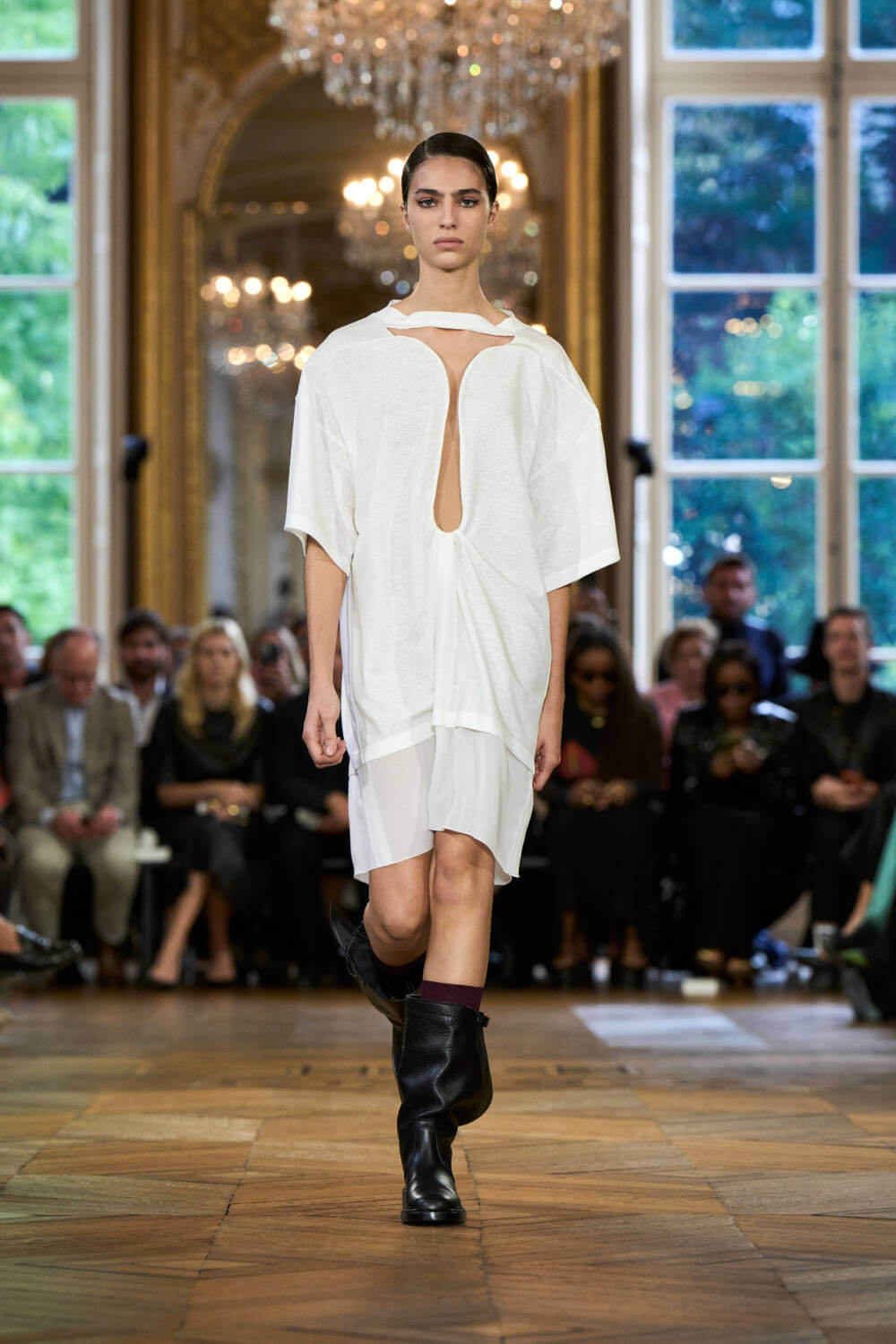 For Victoria Beckham, physicality sculpts our bodies and clothes. The famed polymath, who spent her youth immersed in the studies of classic and contemporary ballet and musical theatre, our postures and gestures mould the garments we wear and give them life. Exploring this perception in her SS24 collection, the impressions ballet’s corporeal movements make on its uniform was her starting point, and evolved into an exploration of the history and stories reflected in the antique fabric furnishings of old houses in the British countryside.