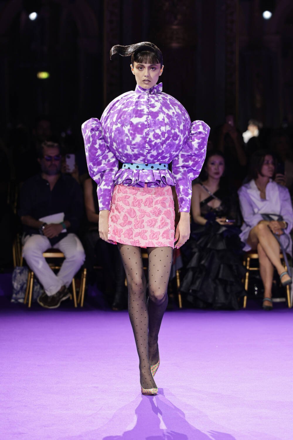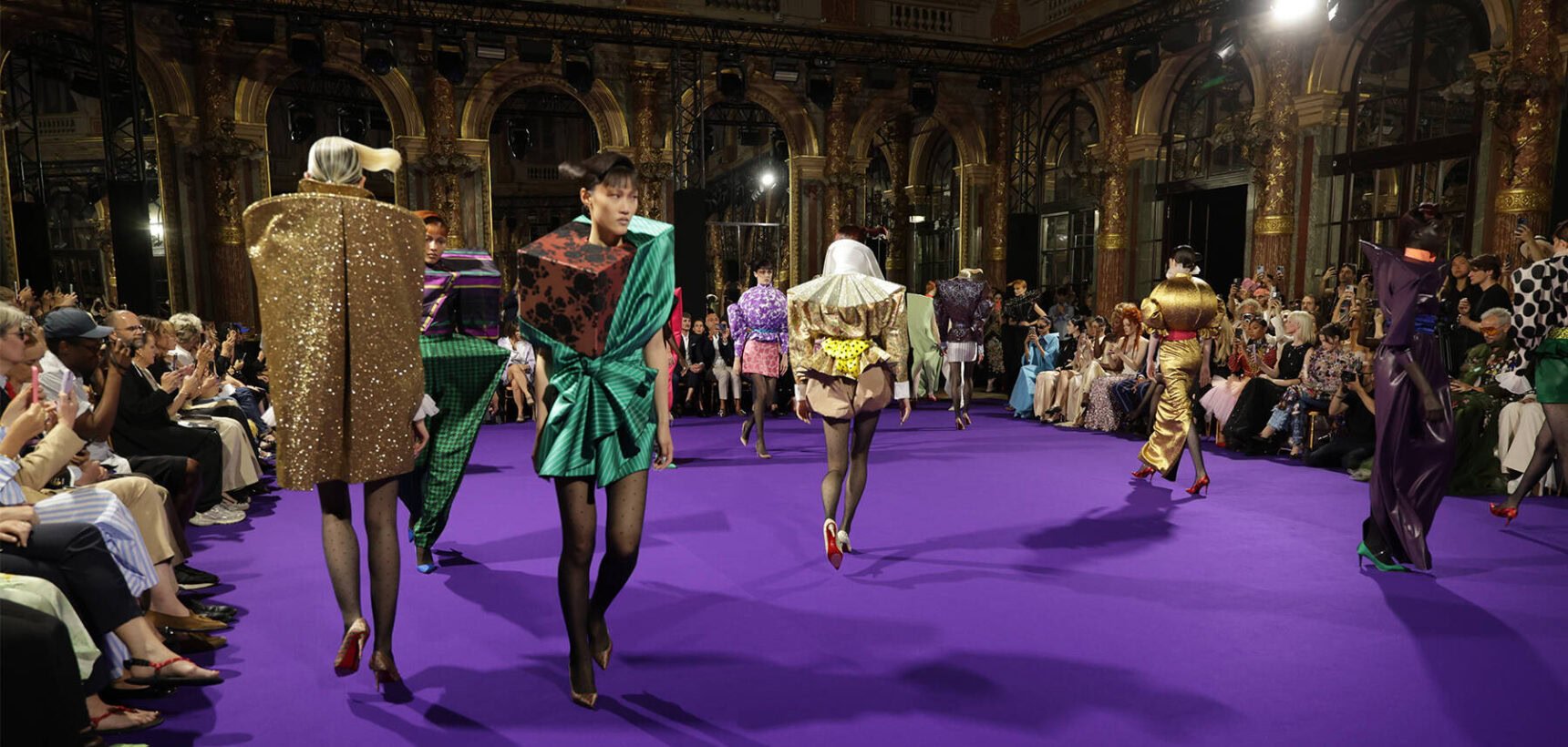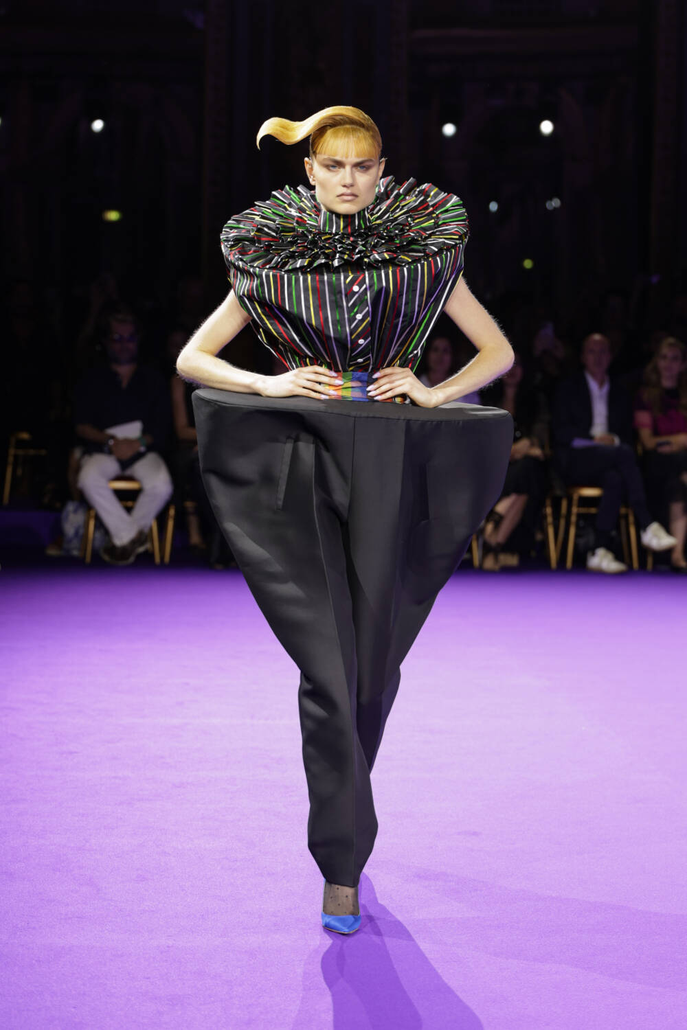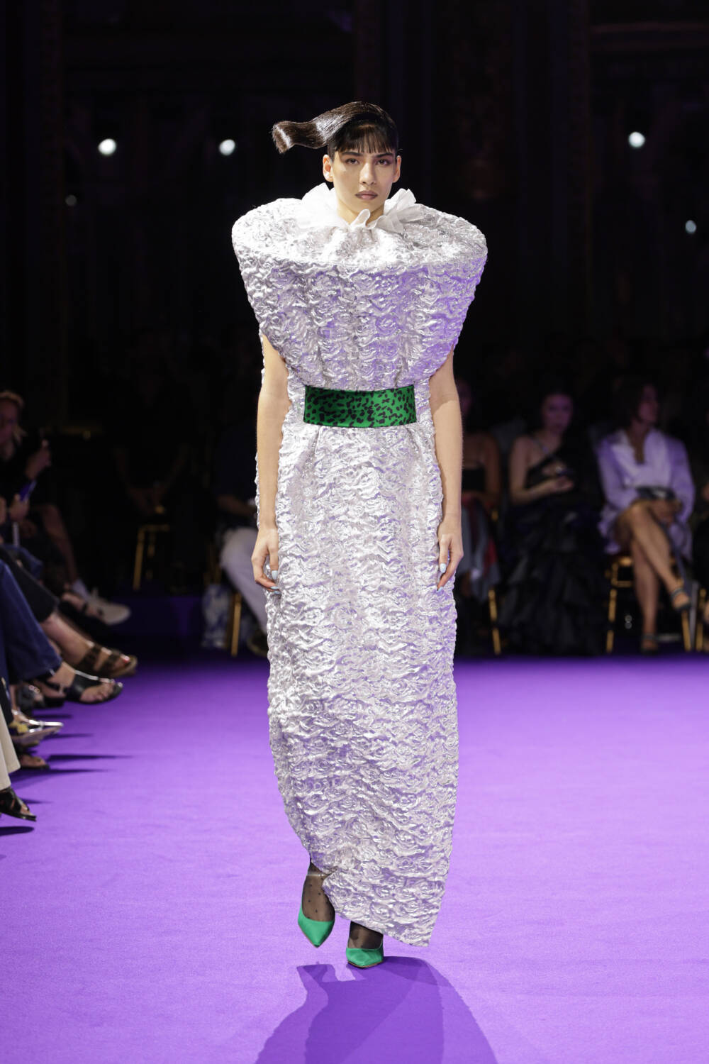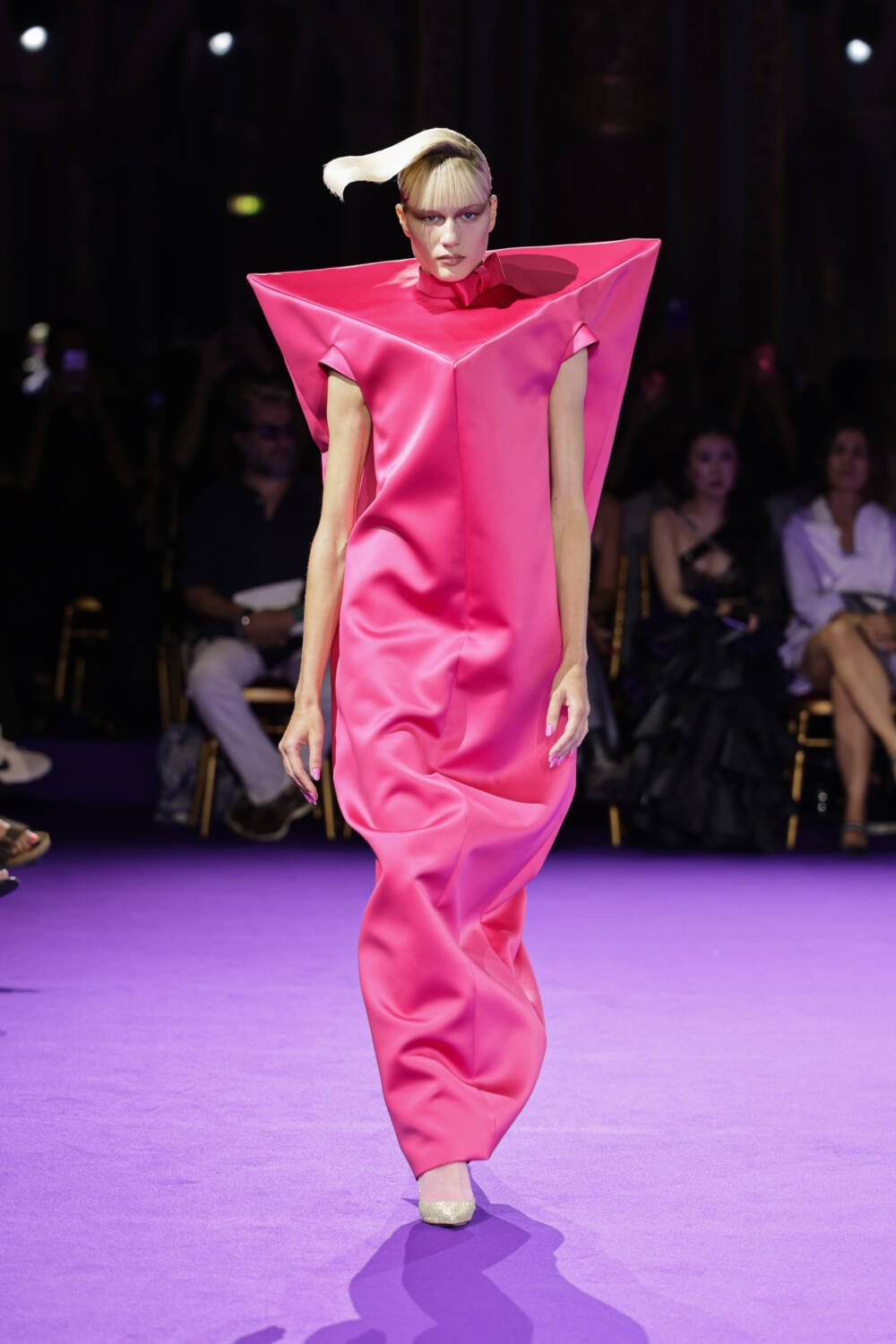 Viktor and Rolf brought a whole new energy to Paris this couture week – one marked by cartoonish cuts, mad proportions and vivacious colours. Calling the collection Haute Abstraction, the clothes that came swaggering along the perimeter of the rectangular, ultraviolet runway maximised silhouettes and played with the infinitude of imagination.
