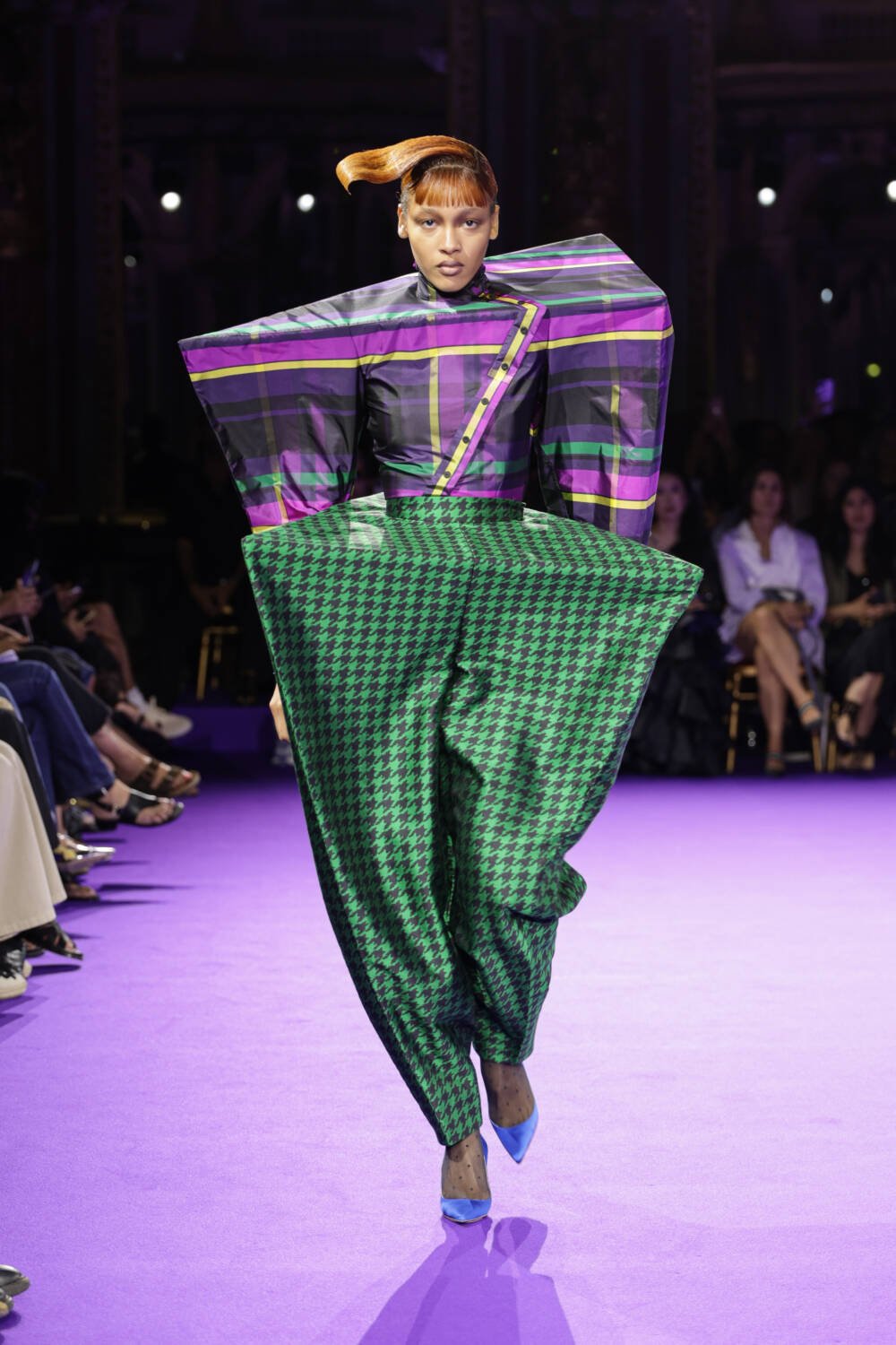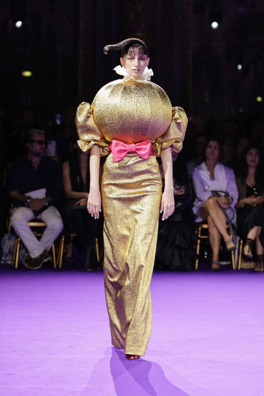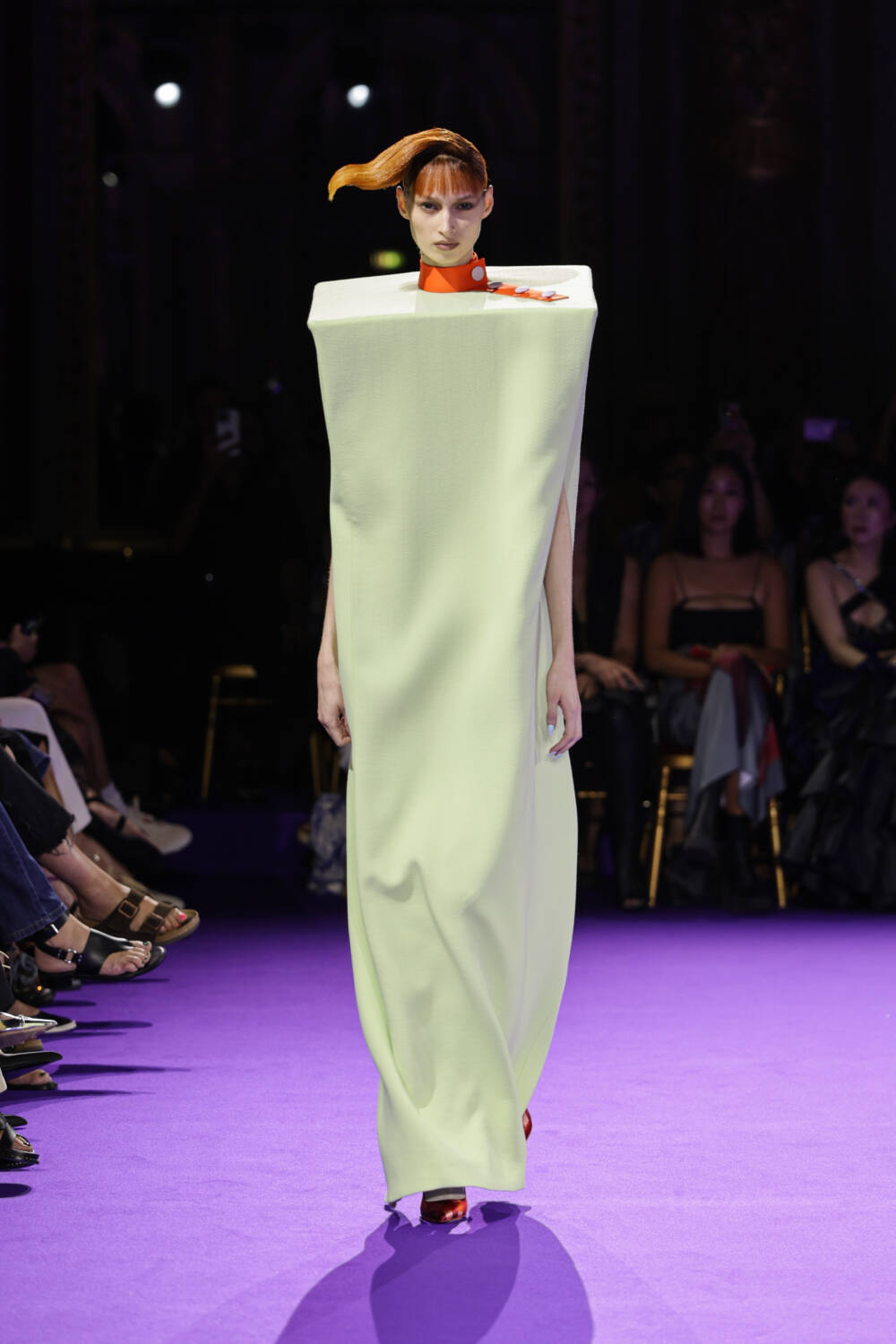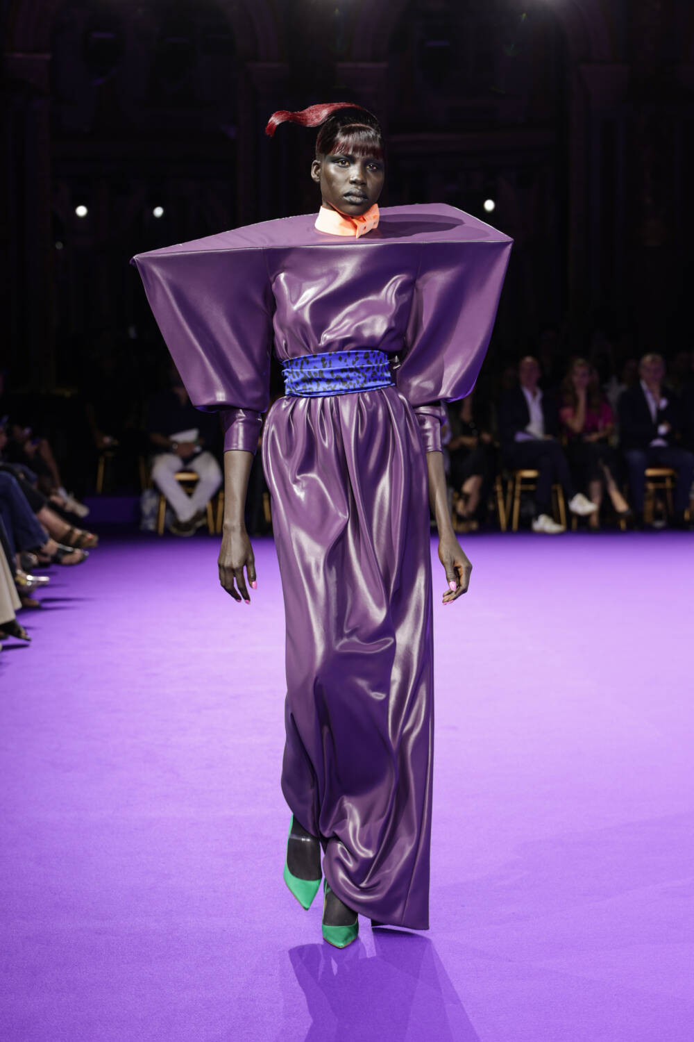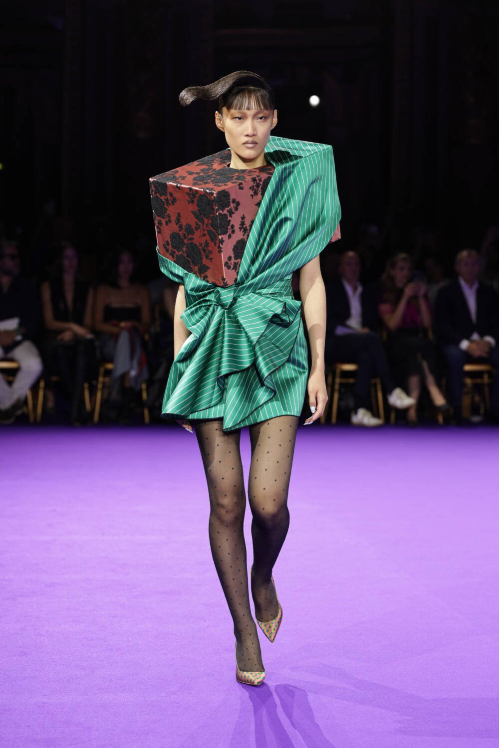 Viktor and Rolf brought a whole new energy to Paris this couture week – one marked by cartoonish cuts, mad proportions and vivacious colours. Calling the collection Haute Abstraction, the clothes that came swaggering along the perimeter of the rectangular, ultraviolet runway maximised silhouettes and played with the infinitude of imagination.