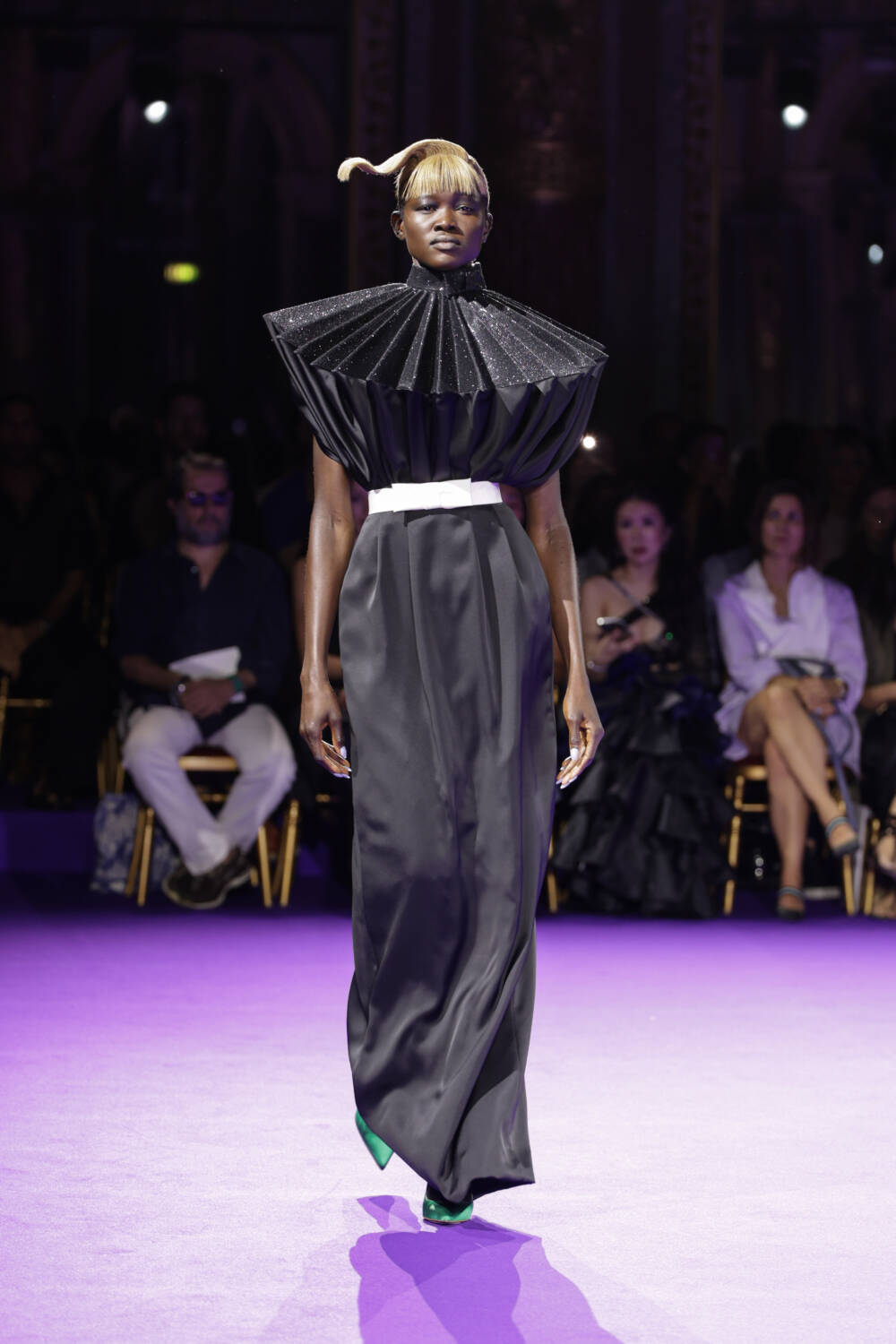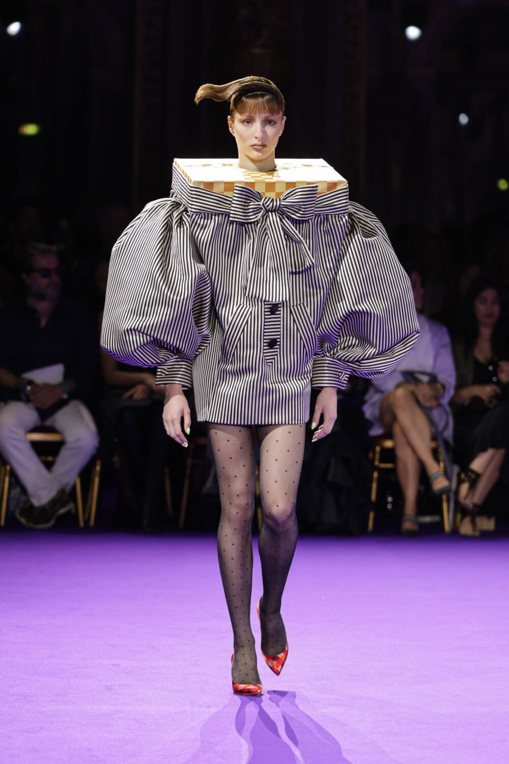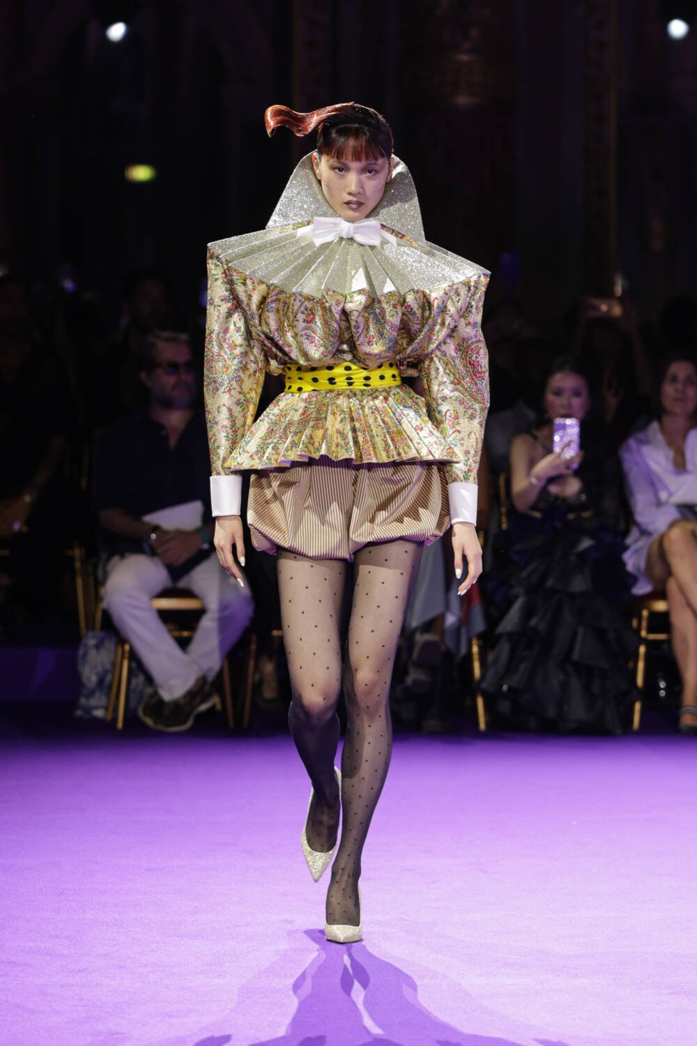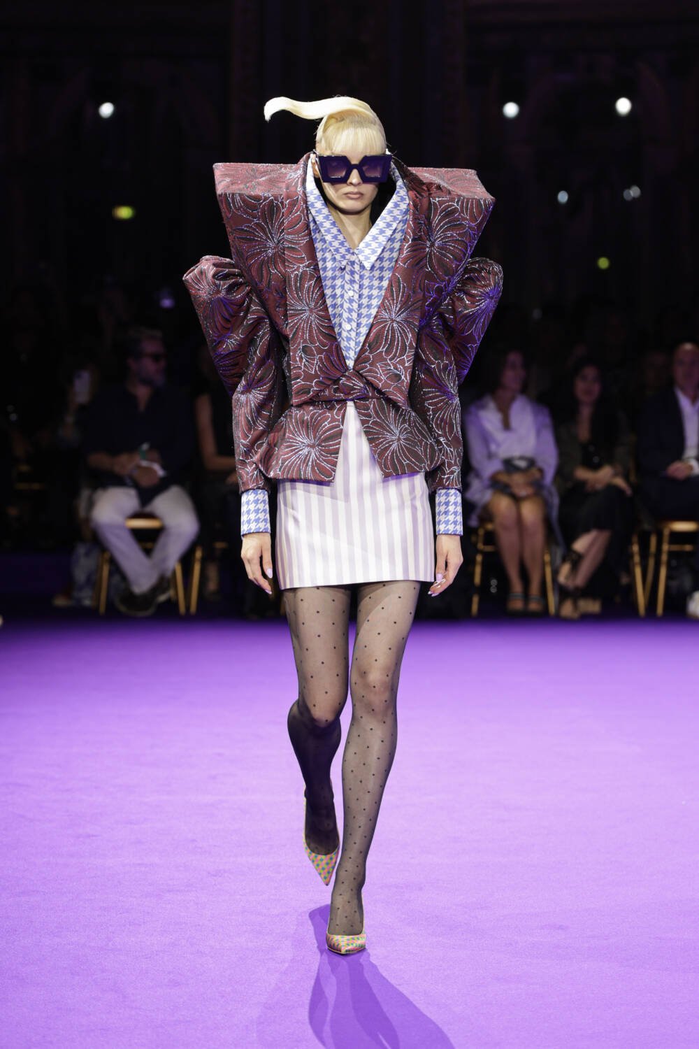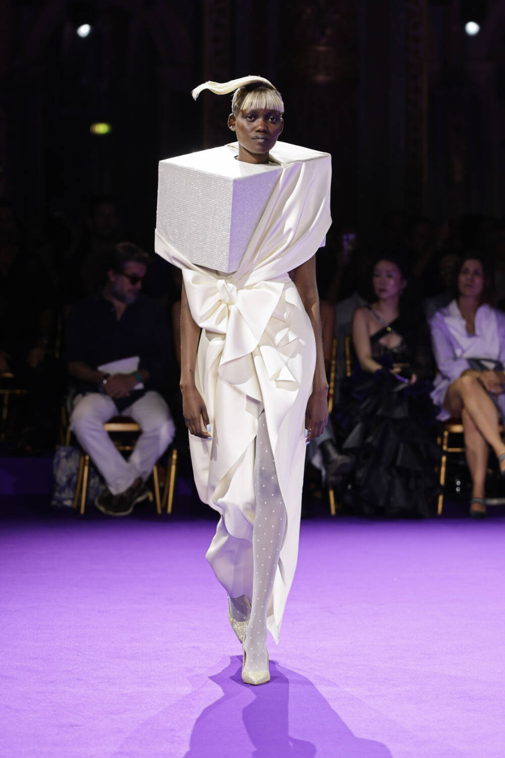 Viktor and Rolf brought a whole new energy to Paris this couture week – one marked by cartoonish cuts, mad proportions and vivacious colours. Calling the collection Haute Abstraction, the clothes that came swaggering along the perimeter of the rectangular, ultraviolet runway maximised silhouettes and played with the infinitude of imagination.