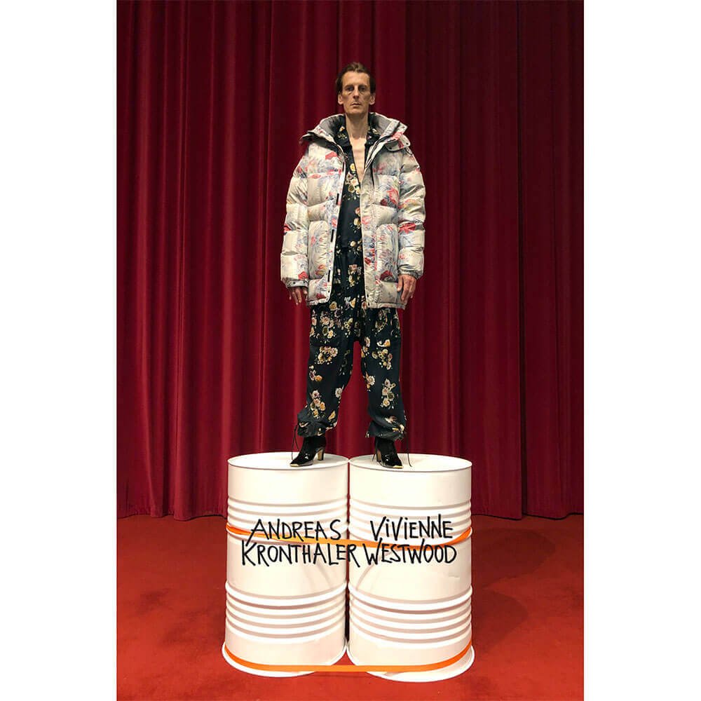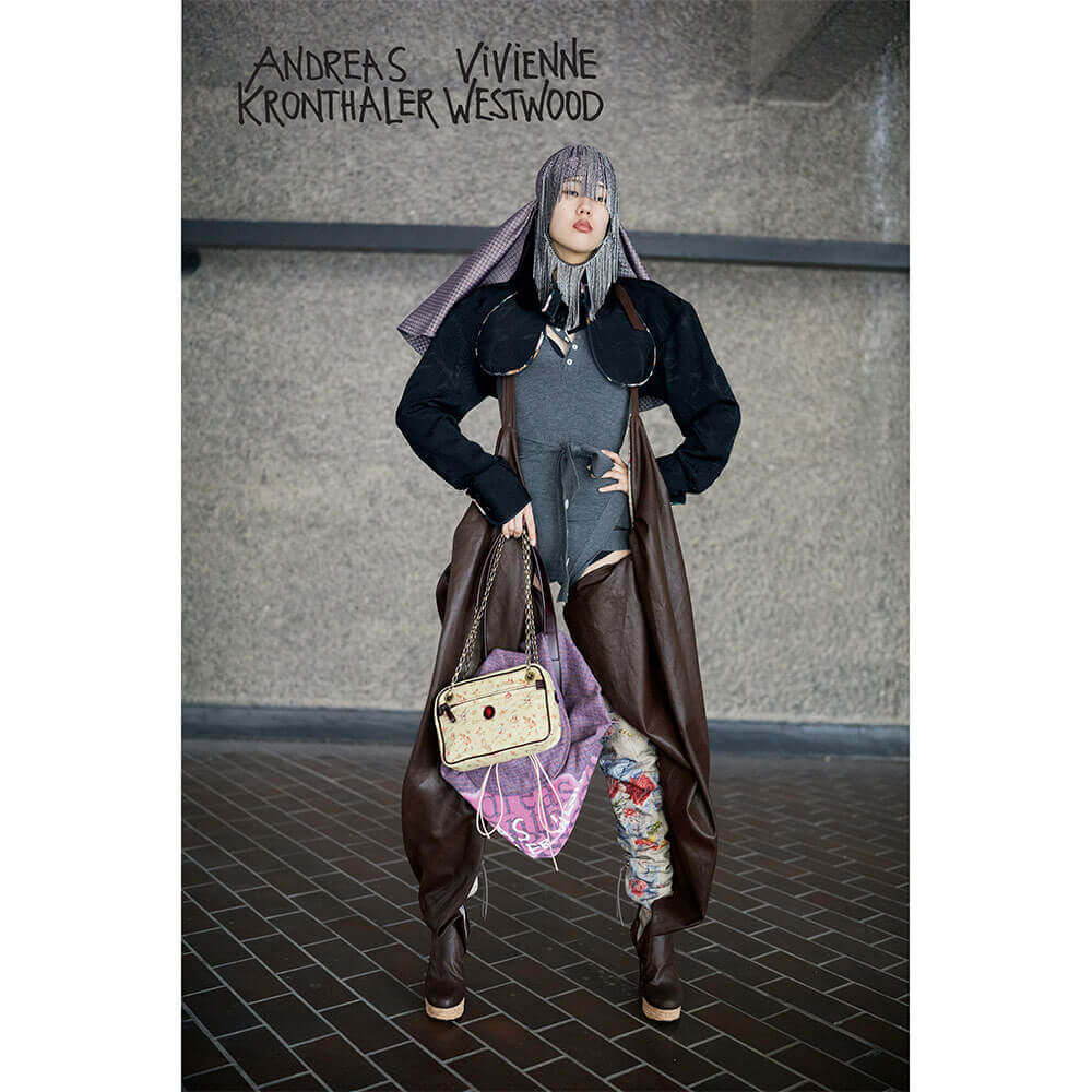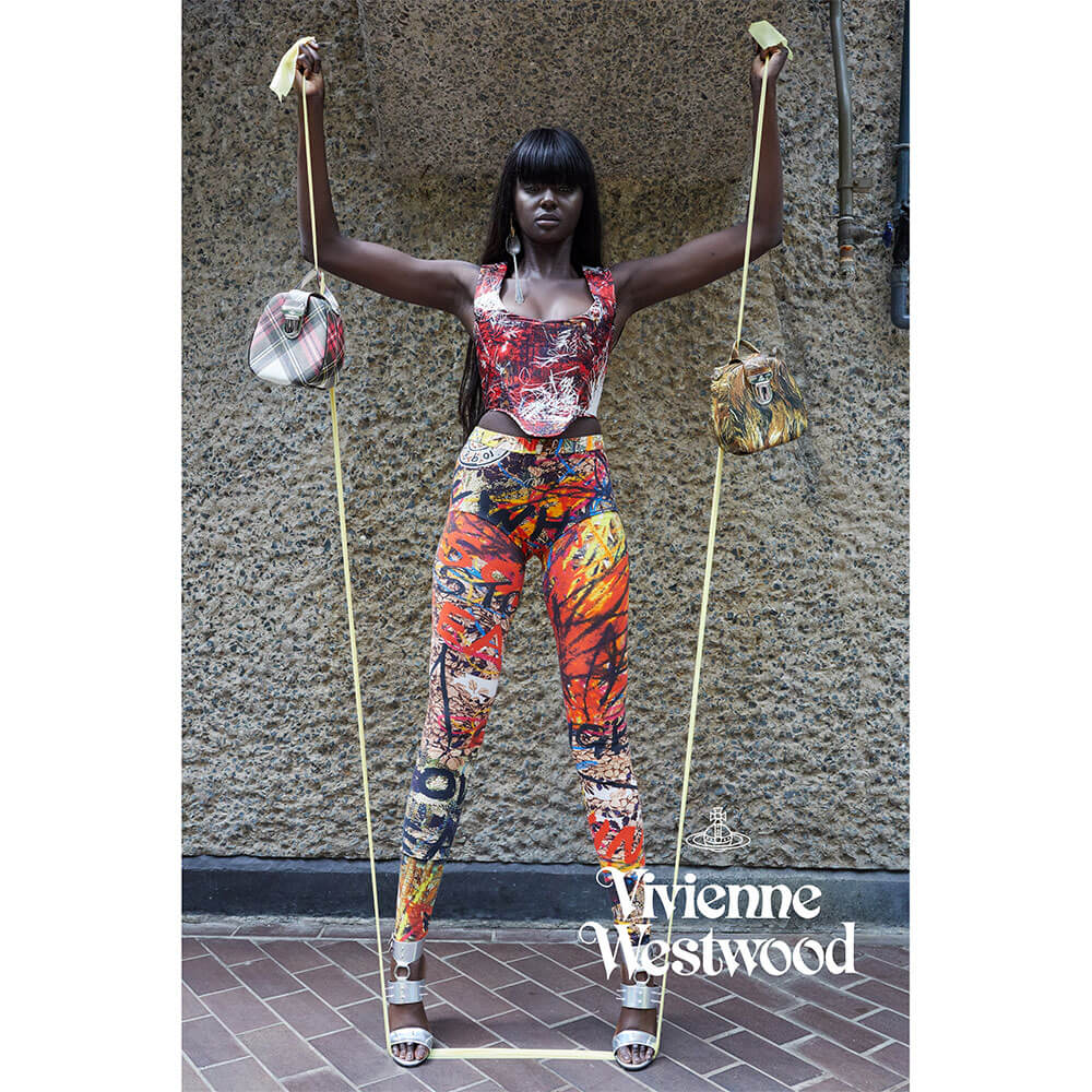 Every Londoner loves a good trip to the Barbican every now and then. With its brutalist architecture and scenic water features, it makes the perfect location for an afternoon stroll with a loved one, a time-killer when you’ve got nothing to do with your mates or a perfect opportunity to spruce up your Instagram feed. Dame Viv and her partner Andreas Kronthaler are Barbican fanatics themselves, so much so the duo decided it would be the backdrop for their AW19 campaign. Their ongoing collaborator, Juergen Teller, made his way from the North Kensington studio and east-bound, bringing a stellar cast of models on the way. The campaign features the new super Duckie Thot in a morning workout routine, Andreas himself looking bridal in a floor-length veil and Dame Viv channeling Grant Wood’s American Gothic. A pitchfork firmly gripped in her hand, with a windswept beehive only she could pull off. “We love the Barbican, we go there on a regular basis over all these years, mostly to listen to concerts,” explains the pair. “It’s a place which always surprises you – the building is exciting, there’s always something new to discover.”