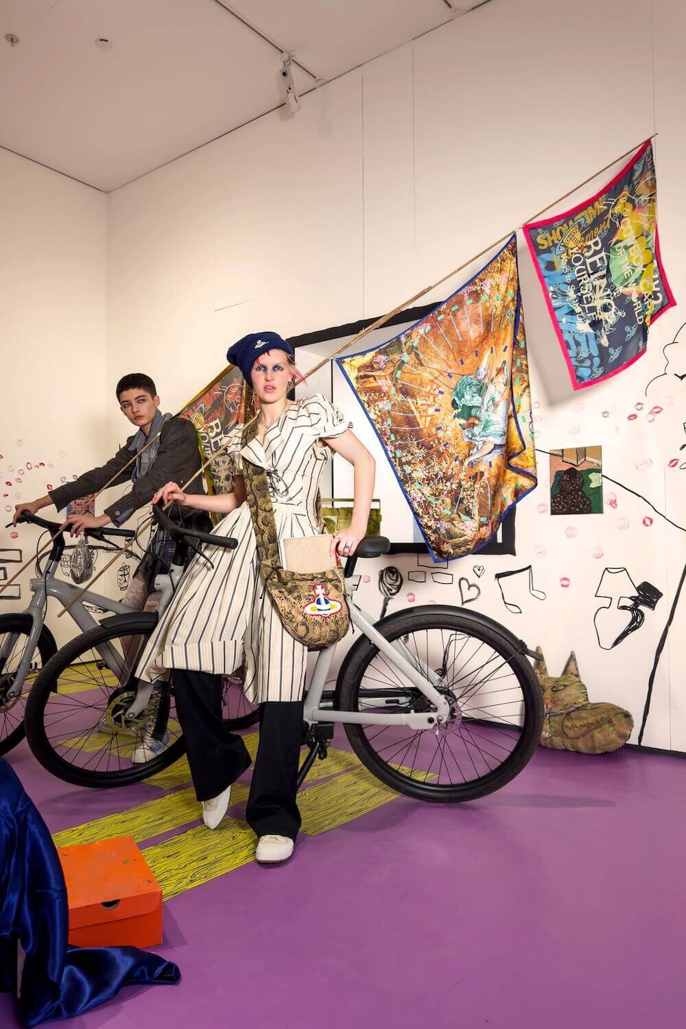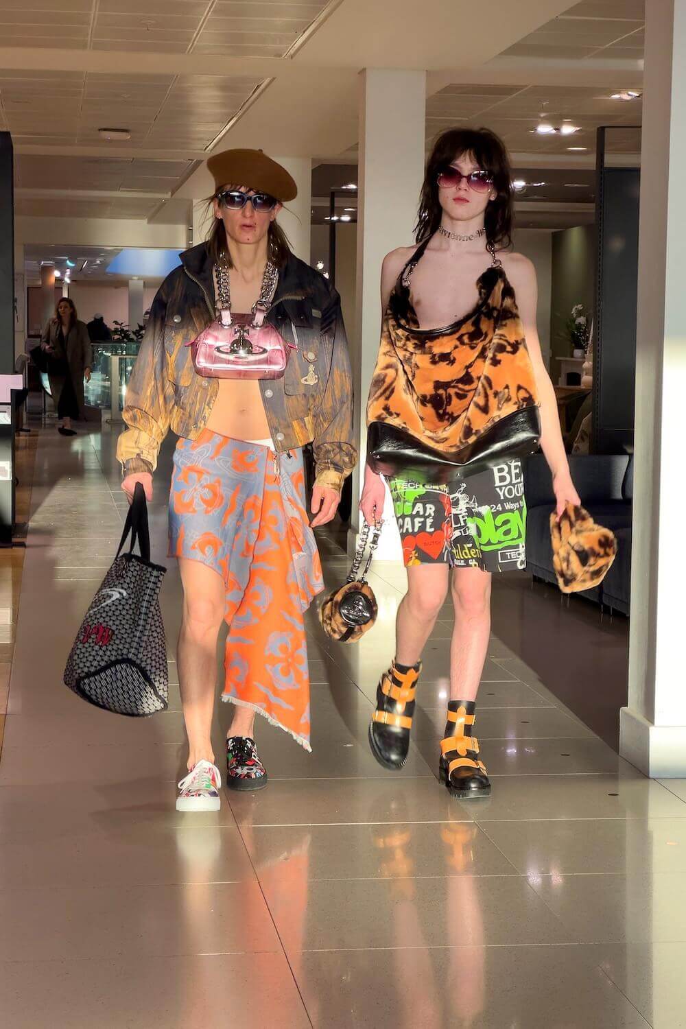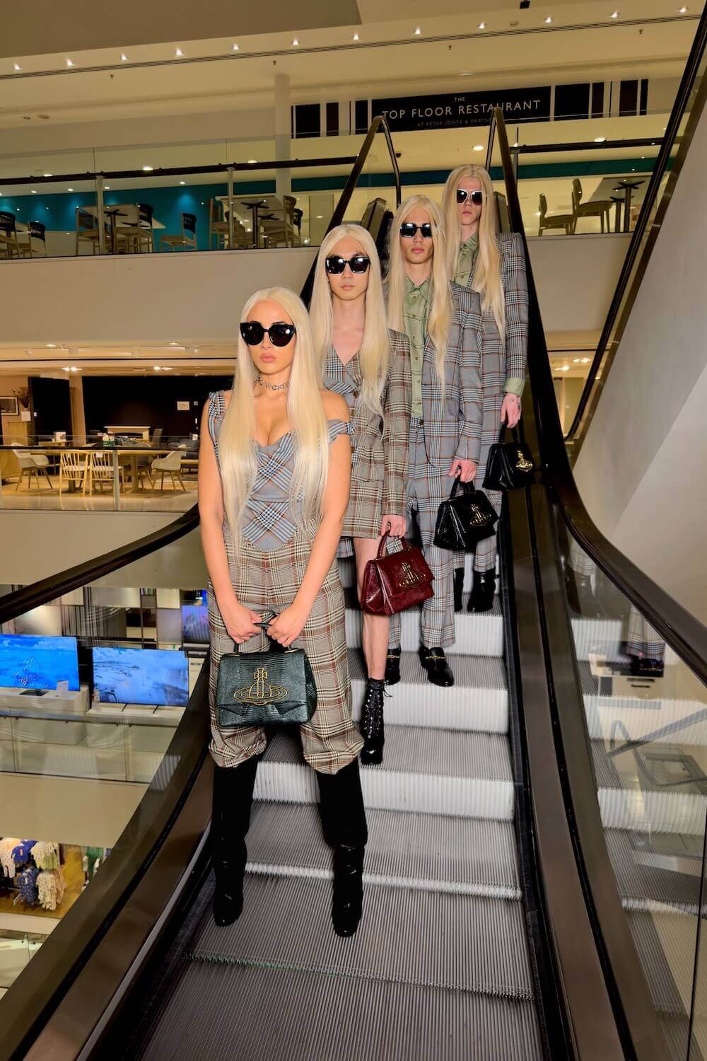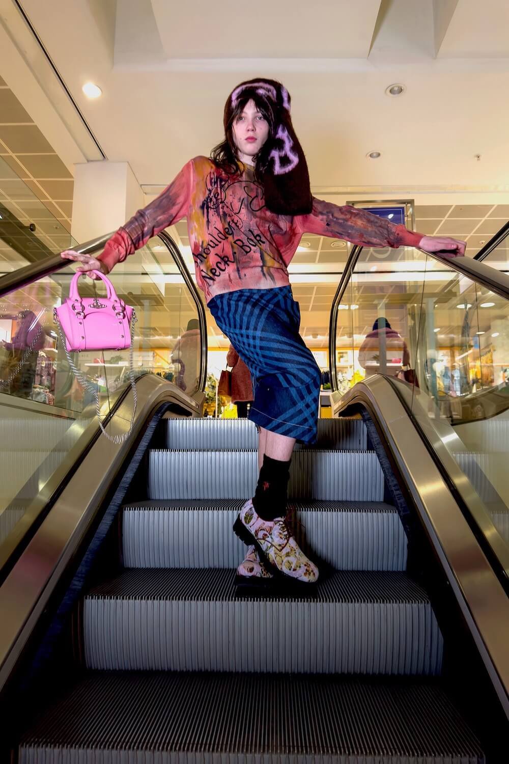 The collection notes spoke of a “journey through the world of interiors”, with the designer to create clothes that will uniform daily lives. Fittingly, for this season’s lookbook, Kronthaler took a gaggle of Westwood muses – including the late designer’s granddaughter, Cora Corré, who closed Kronthaler’s Paris show – for a field trip to Peter Jones. “It was our favourite shop,” writes Kronthaler. “It’s a store for everyone.” Clad in corset tops, barely-there miniskirts and graffitied bombers, they climbed on the beds and mounted the shop’s displays. Ever rebellious, so very Westwood.