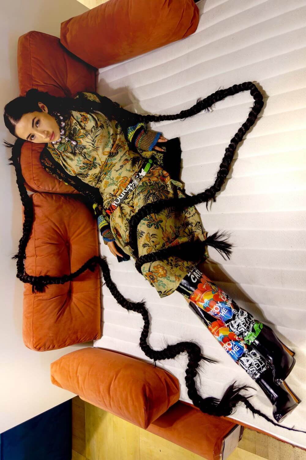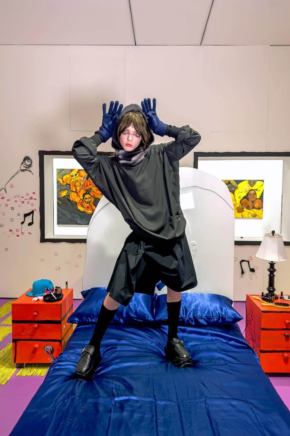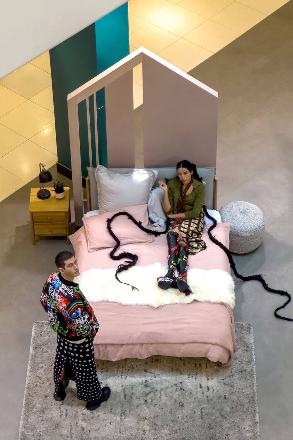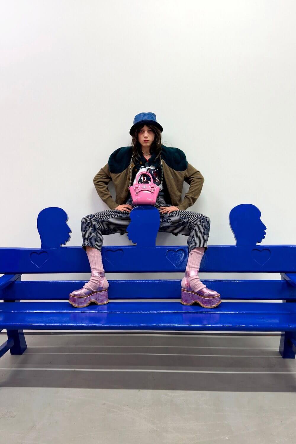 The collection notes spoke of a “journey through the world of interiors”, with the designer to create clothes that will uniform daily lives. Fittingly, for this season’s lookbook, Kronthaler took a gaggle of Westwood muses – including the late designer’s granddaughter, Cora Corré, who closed Kronthaler’s Paris show – for a field trip to Peter Jones. “It was our favourite shop,” writes Kronthaler. “It’s a store for everyone.” Clad in corset tops, barely-there miniskirts and graffitied bombers, they climbed on the beds and mounted the shop’s displays. Ever rebellious, so very Westwood.