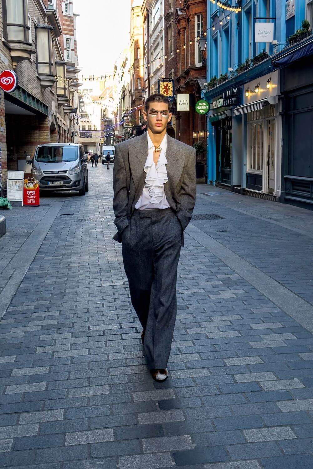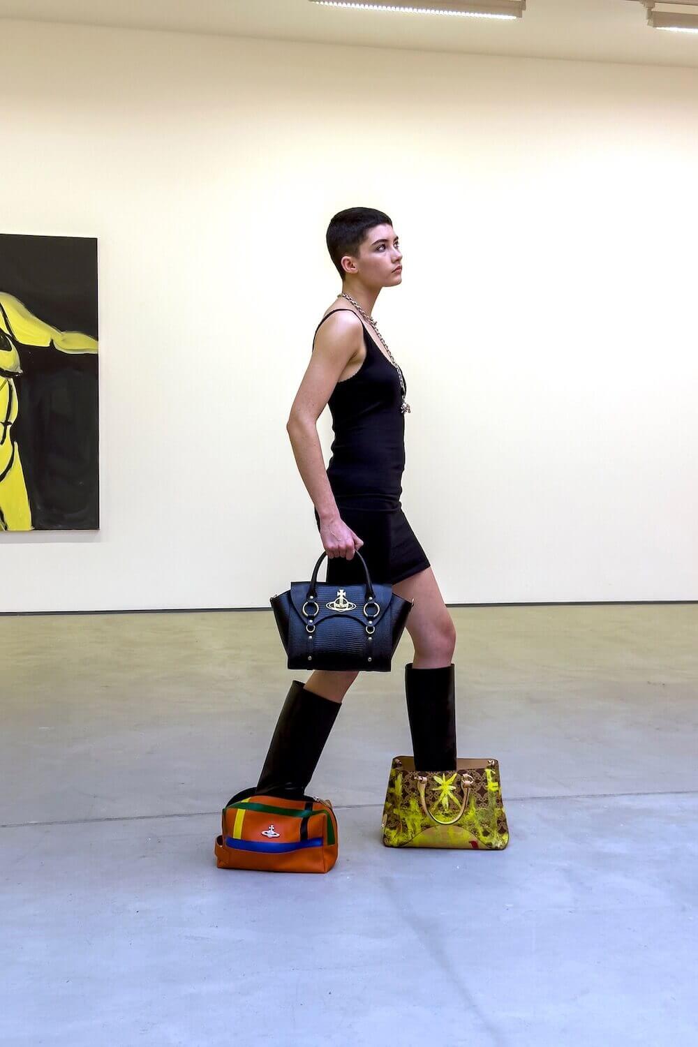 Following Andreas Kronthaler’s emotional first show in Paris following Vivienne Westwood’s passing, the designer continues to honour the legacy of his late wife through her eponymous label’s latest collection. Kronthaler shaped this season’s offering around styles, silhouettes and fabrics pulled from the brand’s extensive archive. Highlights include a crocheted jumper spray painted with Westwood’s Orb insignia, broad, pinstriped suits, deconstructed denim and patchwork bags handmade in Kenya using recycled tartan. One distressed, varsity-style jumper came stamped with a Westwood early ‘90s monkey motif, whilst a revived Westwood check, first used in 2014, was used to envision this season’s tailoring.