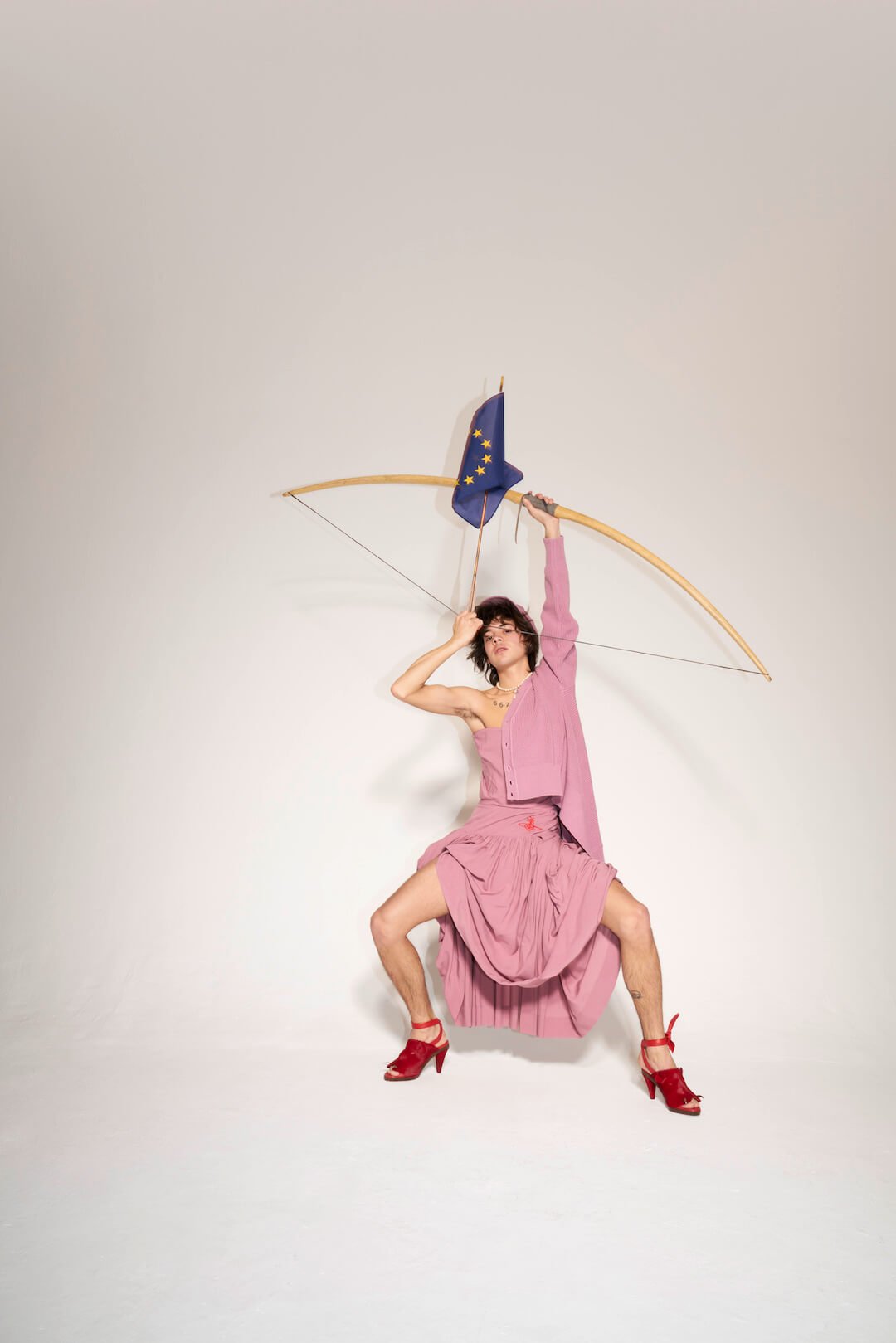 Dame Viv has always been one to do things her way. It’s why, in lieu of a show today, she dropped her Autumn 2018 collection digitally, pinging this film into our inboxes just moments ago. Which, to be honest, suits us – anything that allows us to remain sitting down is plus. Not that this collection encourages any of that – in fact, the opposite, Vivienne Westwood long imploring her fans to stand up and be counted. So this collection, revealed in a (friend-of-10) Maria Ziegelboek-shot lookbook, and accompanying film, is entitled: Don’t Get Killed. Seems logical – but what does it all mean? Well, avid social media followers of our Viv will know she’s been releasing her own “playing cards” – collecting together old Westwood graphics and pamphlets to create a full deck of cards. See those cards as a way to world peace – spanning climate change to war, they are Viv’s instructions on how we can all do a bit better.