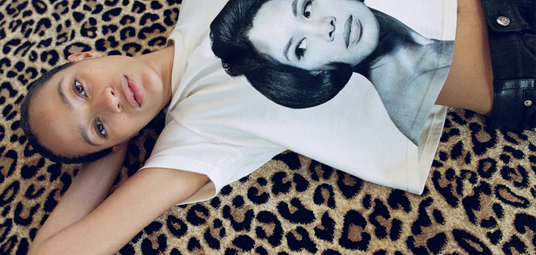 Elsewhere, wardrobe staples, including denim and white graphic tees featuring imagery from Moneta Sleet Jr.’s renowned collection, serve as a quiet nod to Black visual history, courtesy of The Black Image Corporation.