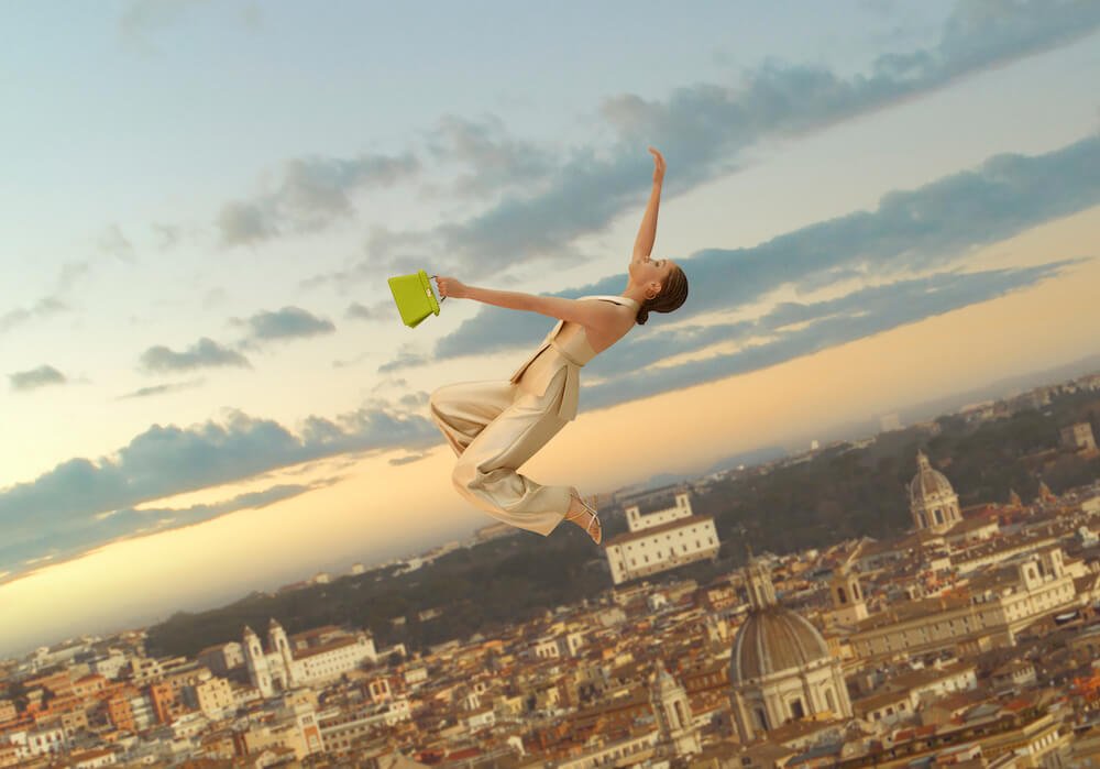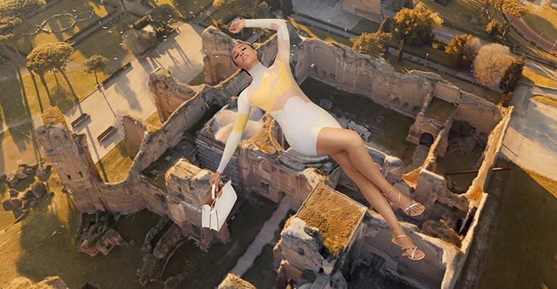 “I feel a very deep connection with the brand,” explains Guadagnino, “my mother used to wear Fendi back in the 70s and 80s so the logo, the type of materials, the quality and the design of Fendi have always been part of my imagery.” For Silvia Venturini Fendi, the Peekaboo’s lasting appeal comes down to its defiant qualities. “I think that carrying a Peekaboo says something about a very strong, powerful and empowered person who is not afraid to hide,” the designer explains. Haven’t got yours yet? You know what to do. And oh, if you’re in Rome anytime soon, look to the sky, you might just spot a flying Adwoa.