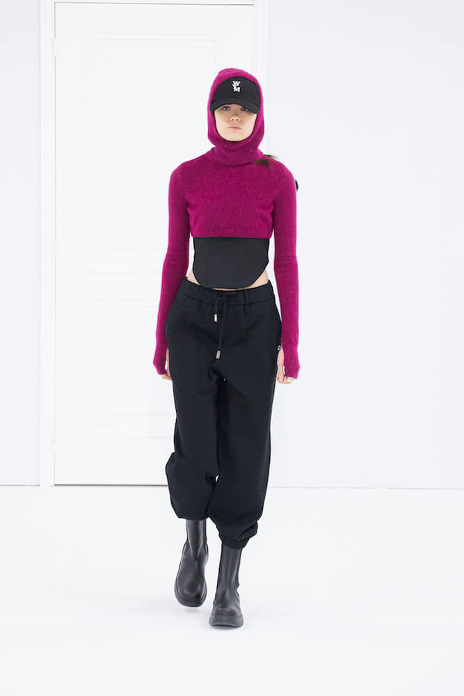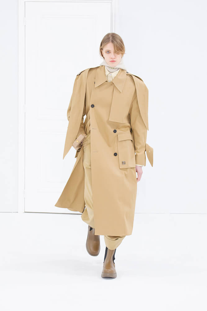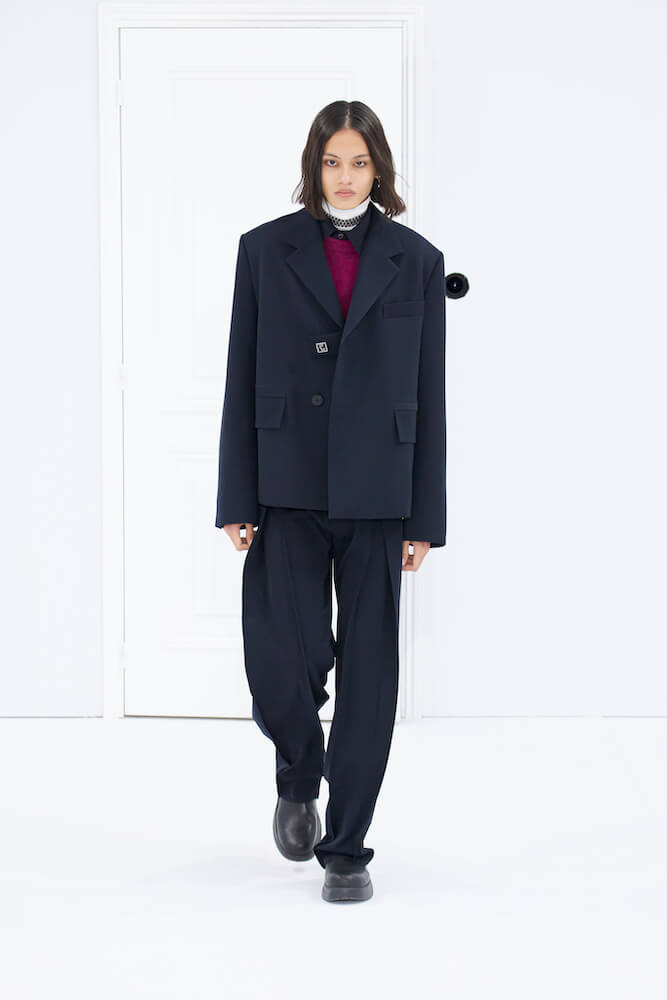 Wooyoungmi showed its AW22 collection at a car park where rooms were connected to one another by doors sans furniture. Models opened doors and moved through each room with only the sound of the doors opening and closing as the soundtrack, so simple but felt dramatic.