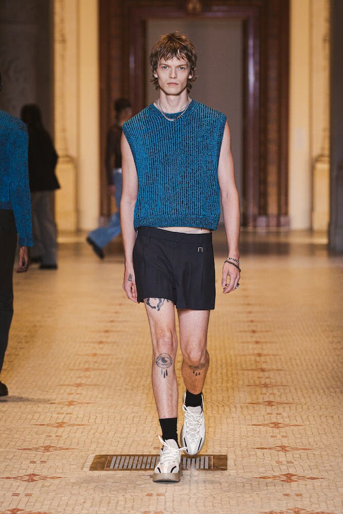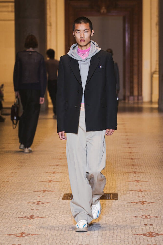 It’s been two decades since South Korean designer, Woo Young Mi, launched her eponymous label on the Parisian runway. And while tailoring and workwear have always been central to Wooyoungmi’s DNA, her SS23 assortment was retrospective, becoming invigorated by nostalgia and opting for the boxy silhouettes of days past – even reusing below-the-knee shorts ripped directly from the inaugural collection. Granted, the new edit was not so much an anniversary celebration, but a comprehensive fashion history contemporarily swayed.