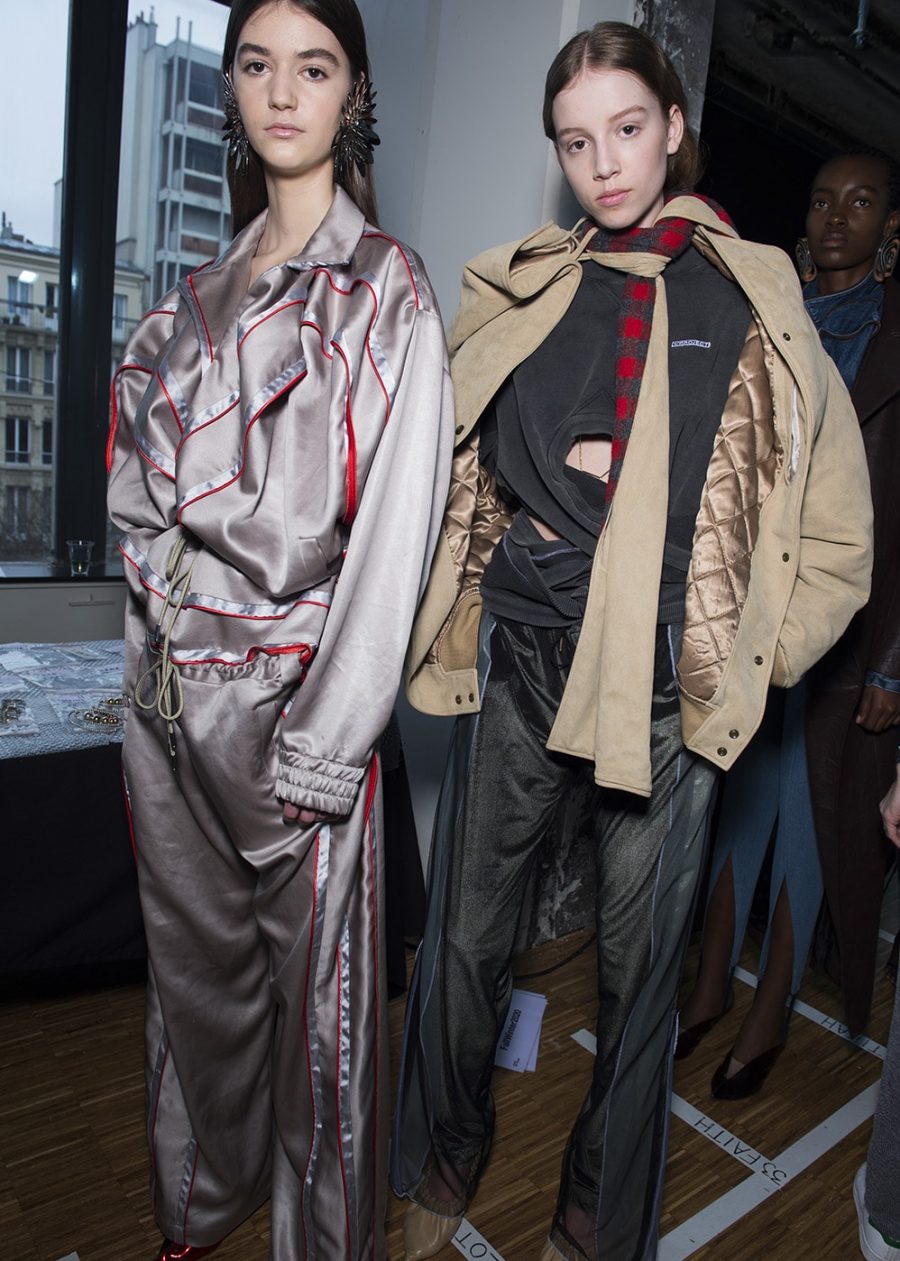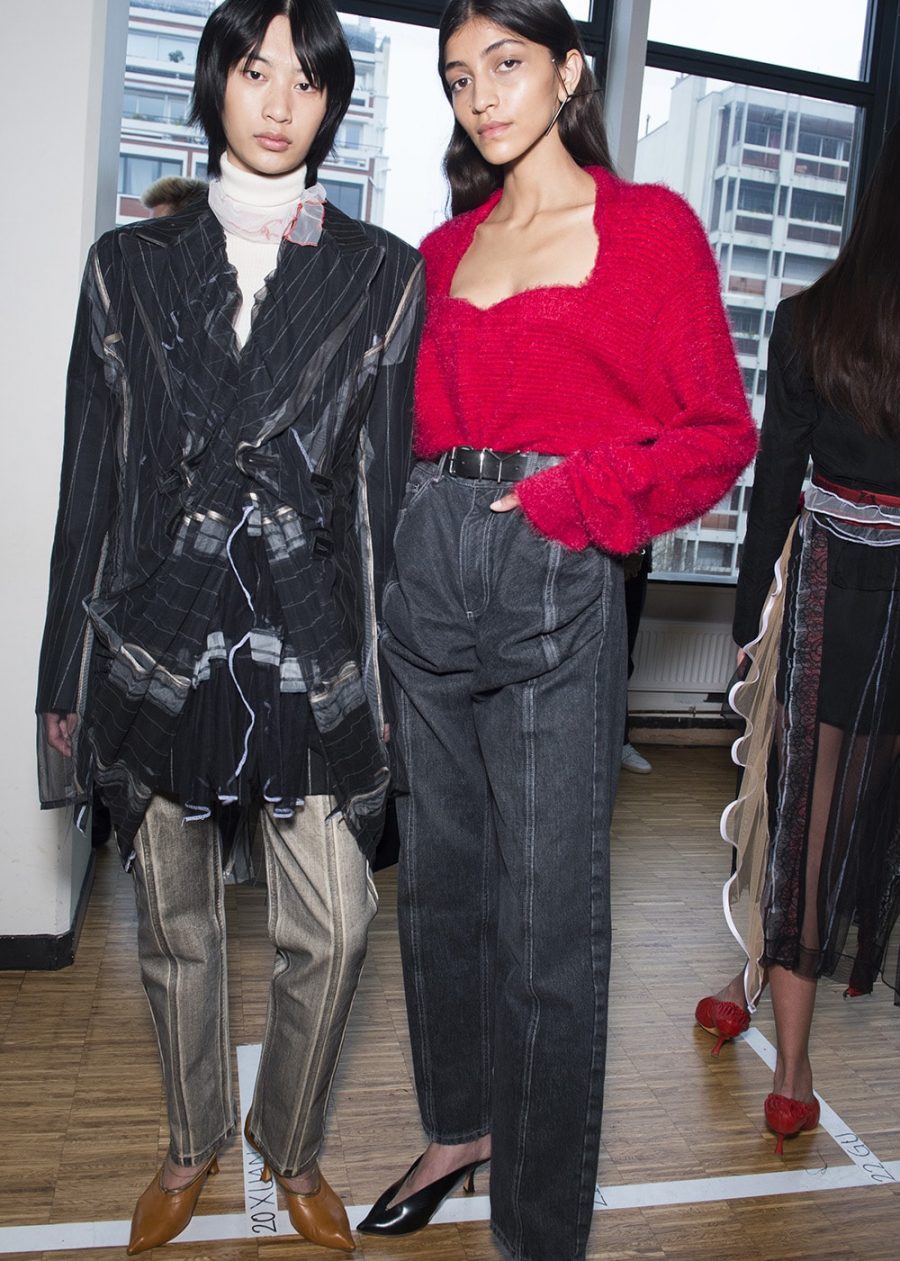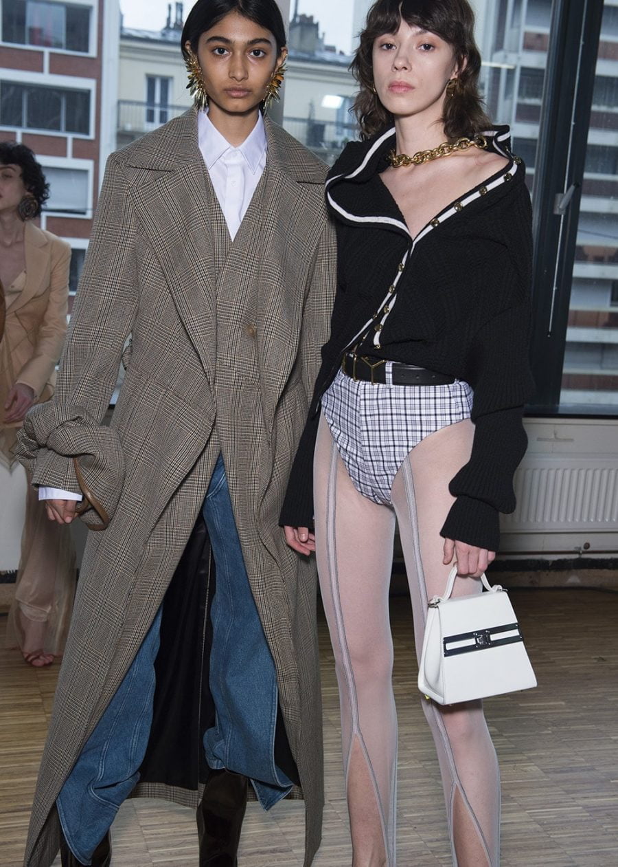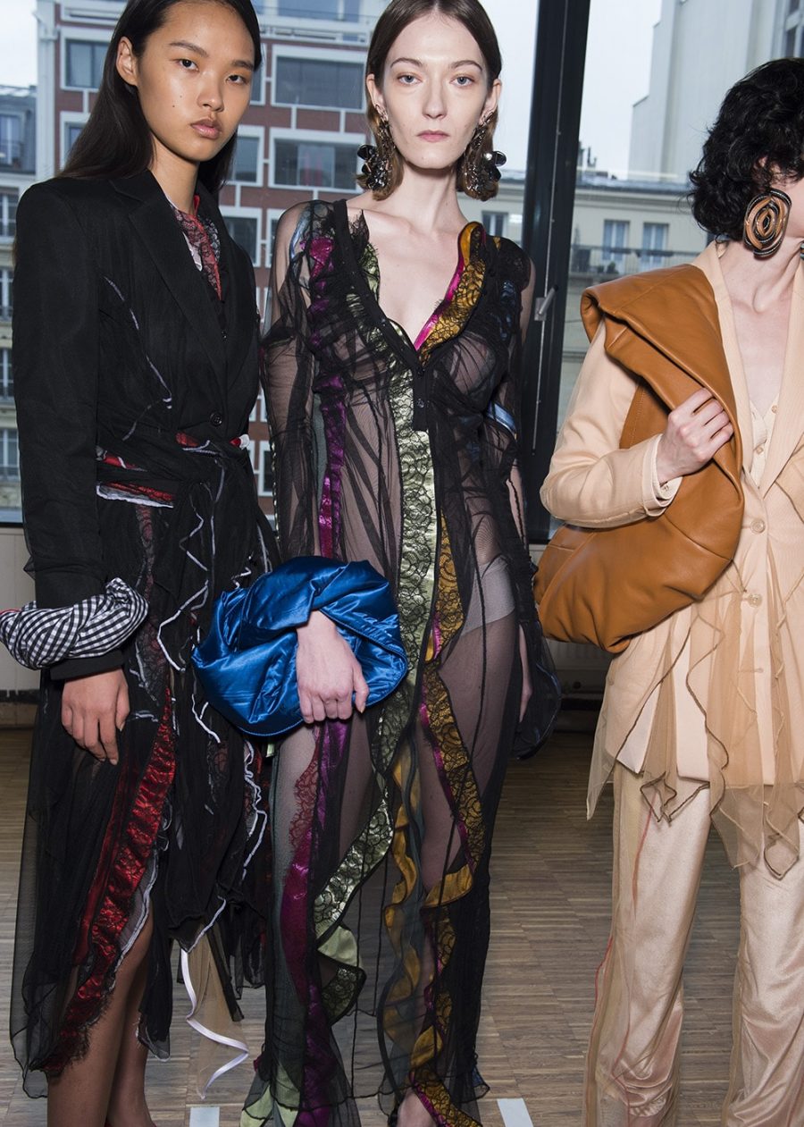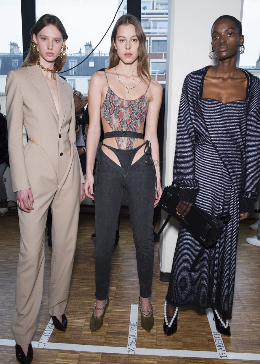 While it might not be apparent to a Y/ Project first-timer, any Glenn Martens superfan will be able to tell you the Belgian designer toned things down significantly this season. With the title (and mantra) of the AW20 collection being “Elevation in Continuation,” he looked at developing a set of more sophisticated ideas while keeping in with his – both literally and metaphorically – twisted aesthetics. Finding new ways of growing a brand is a necessary consideration when designing collections in a time that’s so heavily led by newness and reinvention. But instead of changing things up, Martens translated the visually complexities by purifying his output. Yes, there were still plenty of see-through bodycon silhouettes, thongs poking out of low-slung jeans and opulent frocks with built-in hip pads – but the focus was on showcasing the masterful construction of these pieces. Nurturing less of a layered look in place of singular thoughts presented with each outing, it was super-stylist Robbie Spencer who brought a fresh set of eyes to Y/ Project’s opulence.