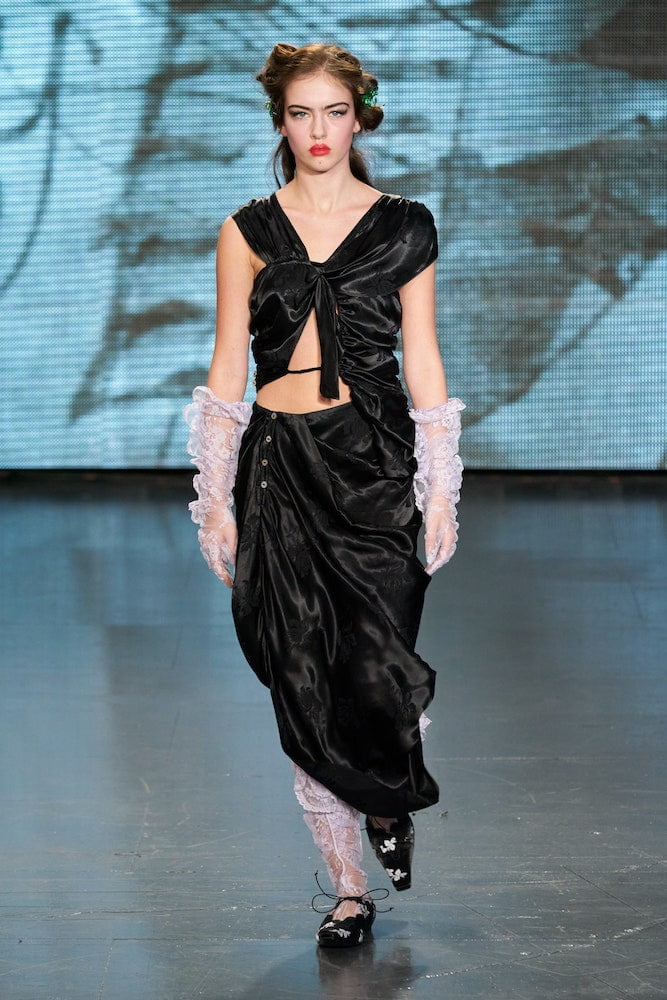 A change of mood and mentality took over at Yuhan Wang’s SS22 show on Saturday morning. As a heavy yet serene soundtrack played in the background, the collection payed tribute to domestic abuse victims and tackled themes of gender inequality.