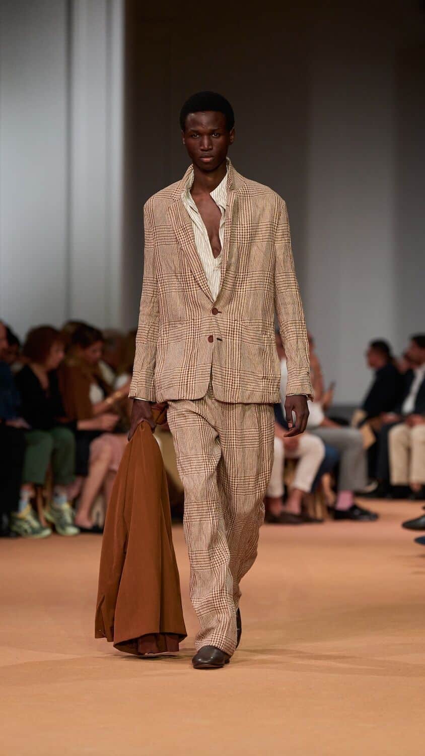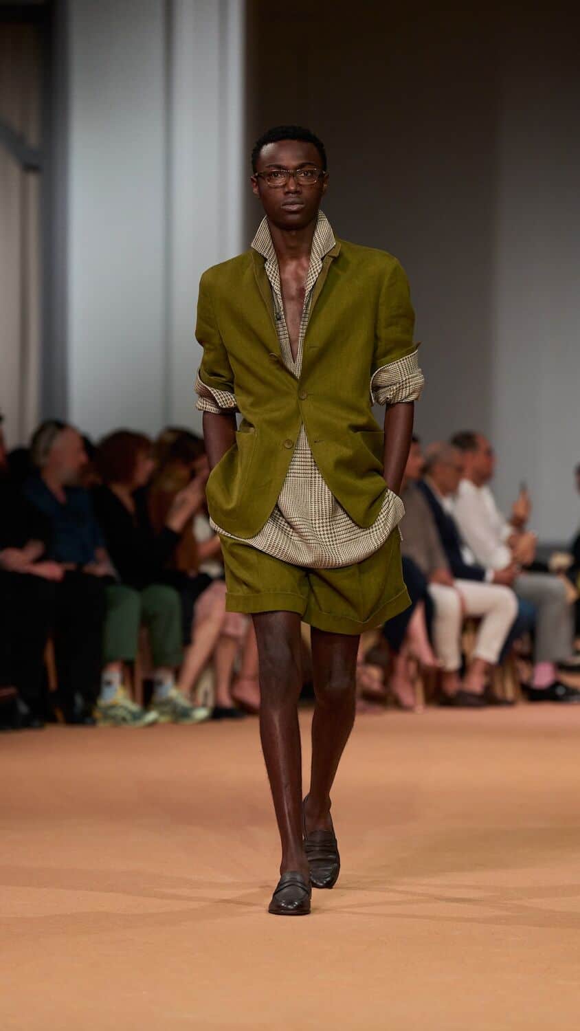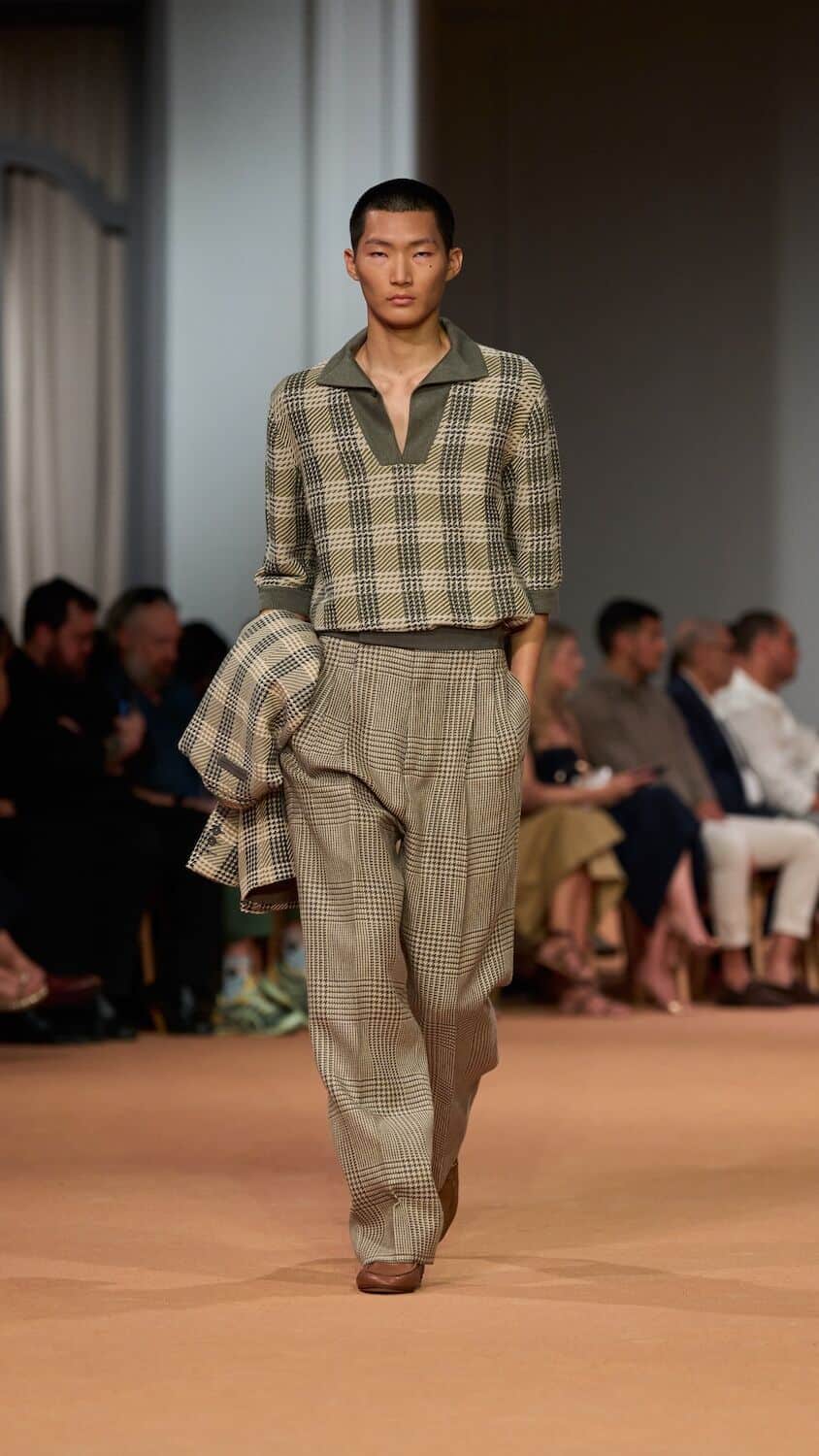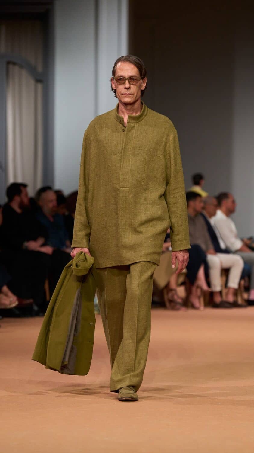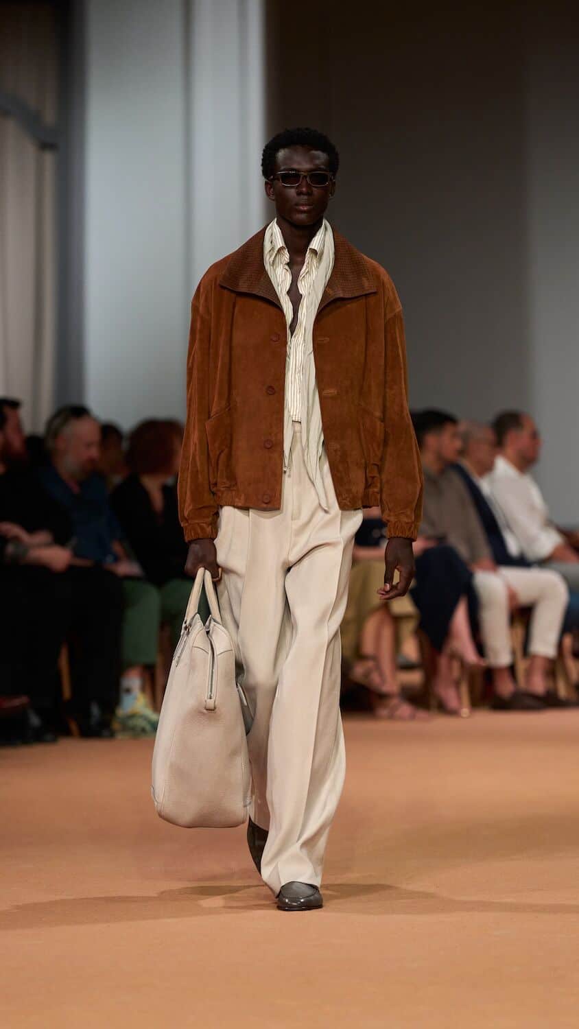 This time, Sartori called upon friend of the house, the musician James Blake, to score the brand’s debut in United Arab Emirates which took place inside the lavish Dubai Opera. “There is an immediacy and a liveliness to the earthy allure of this collection that belies the layered thought process behind it,” says Sartori. “As designers, we do half of the work: the rest happens when clients interpret pieces day by day. This individual, non-standard interpretation today is on the catwalk, showing the Zegna view in its natural environment: life. There is a culture of dressing, a proper and insouciant manner to it which to me captures a peculiar Italian timbre that I want to keep as our signature”.