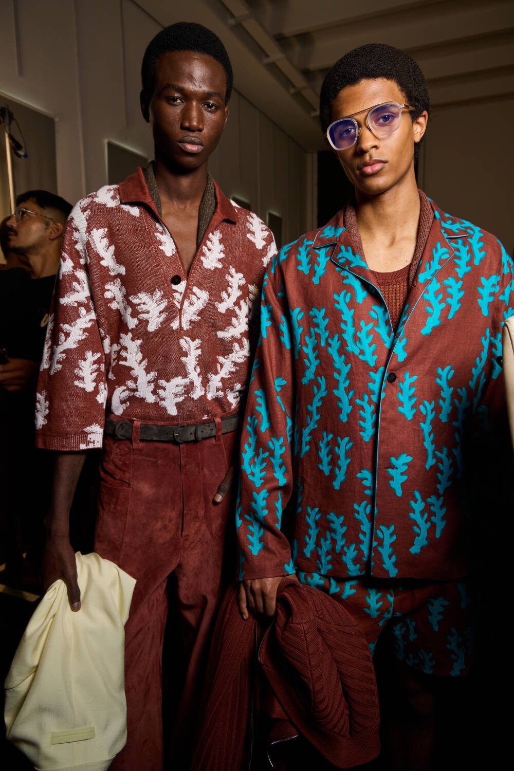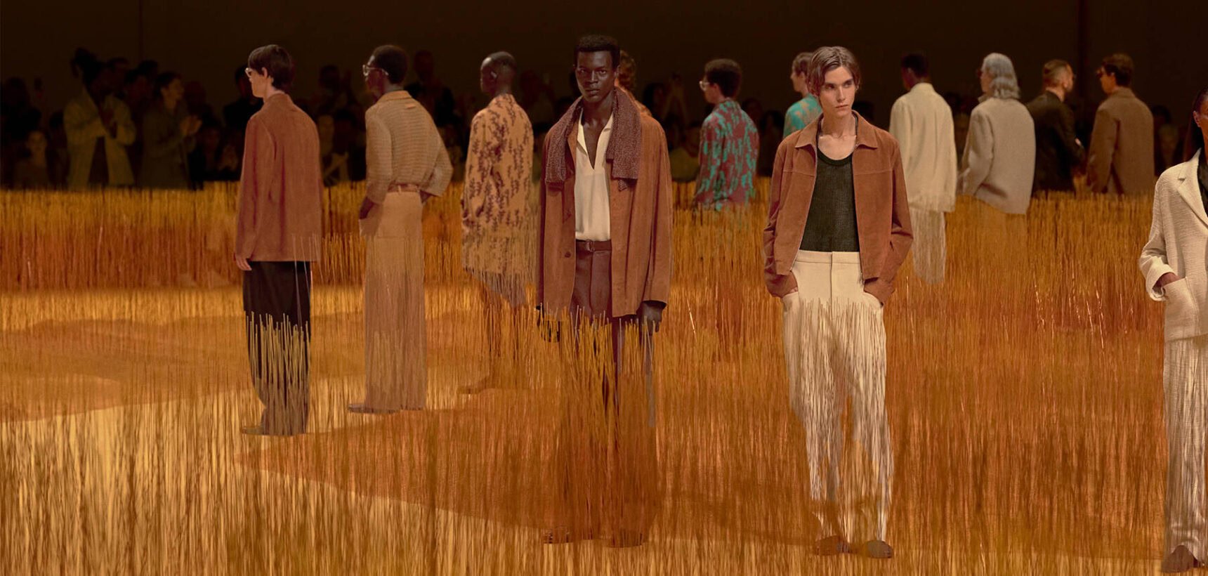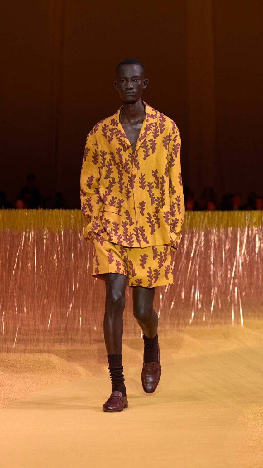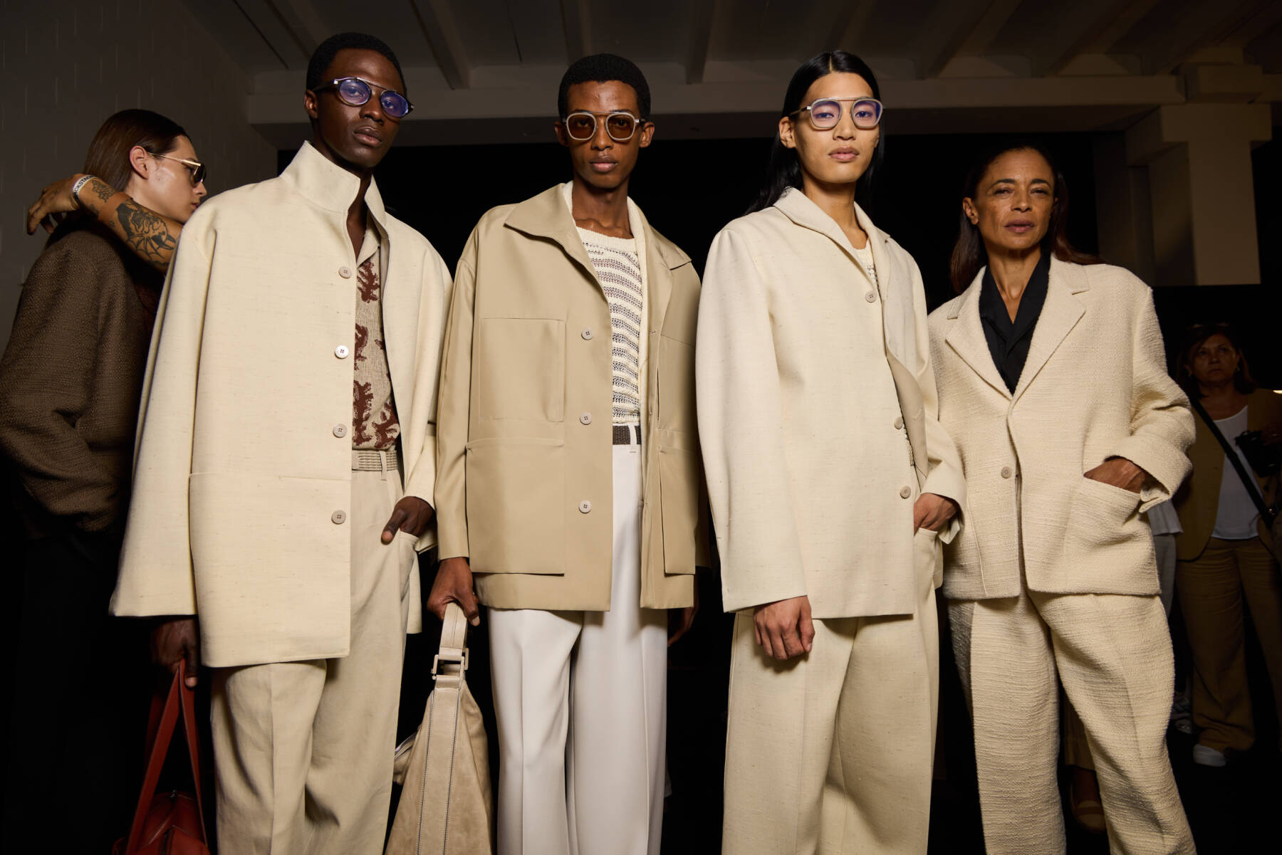 “The making of nature and the making of man meet, shift, and overlap in a fantasy of industrial nature and natural industrialism made real,” read the show notes. Designer Alessandro Sartori used Zegna’s fully traceable Oasi Linen – which is ever so soft in construction – to create strong tailoring. Whether it be relaxed trousers that bounced playfully as the models walked, button-less polo knitted shirts or lightweight, elongated blazers in earthly hues, the collection was a glorious continuation of Sartori’s elegantly relaxed vision for the brand. “Now that our reformed vocabulary has been established, it is the moment to focus on how items are or can be used, on the singular ways they mold to individual personalities,” said the designer.